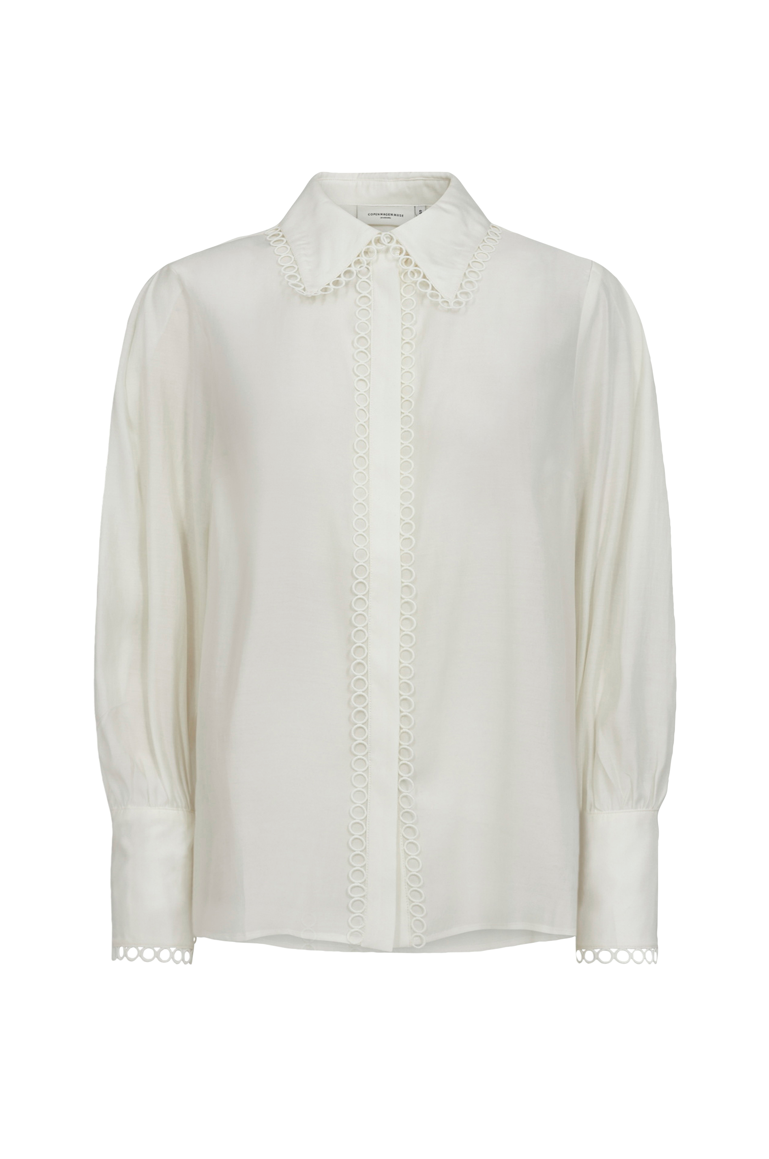 • Skjulte knapper foran• Ballonærmer med manchet• Dekorativ kant• Lægge på skuldrene
