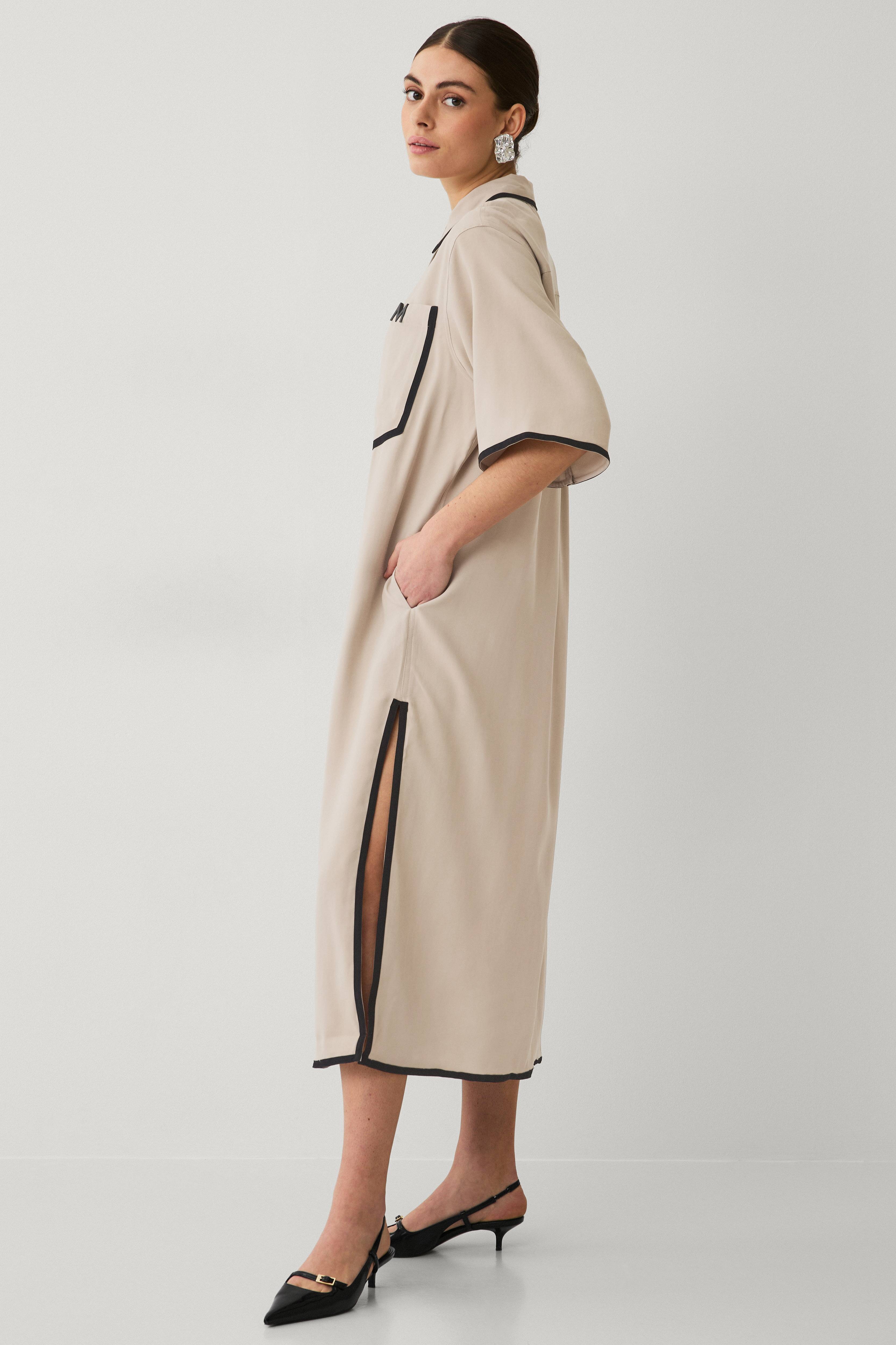 • Lige, uformel model med matchende kanter• Skjulte knapper hele vejen frem• Store brystlommer• Bredt, halvlangt ærme• Sidelommer• Høje slidser nede i siderne• Længde: 127 cm i størrelse XS/S