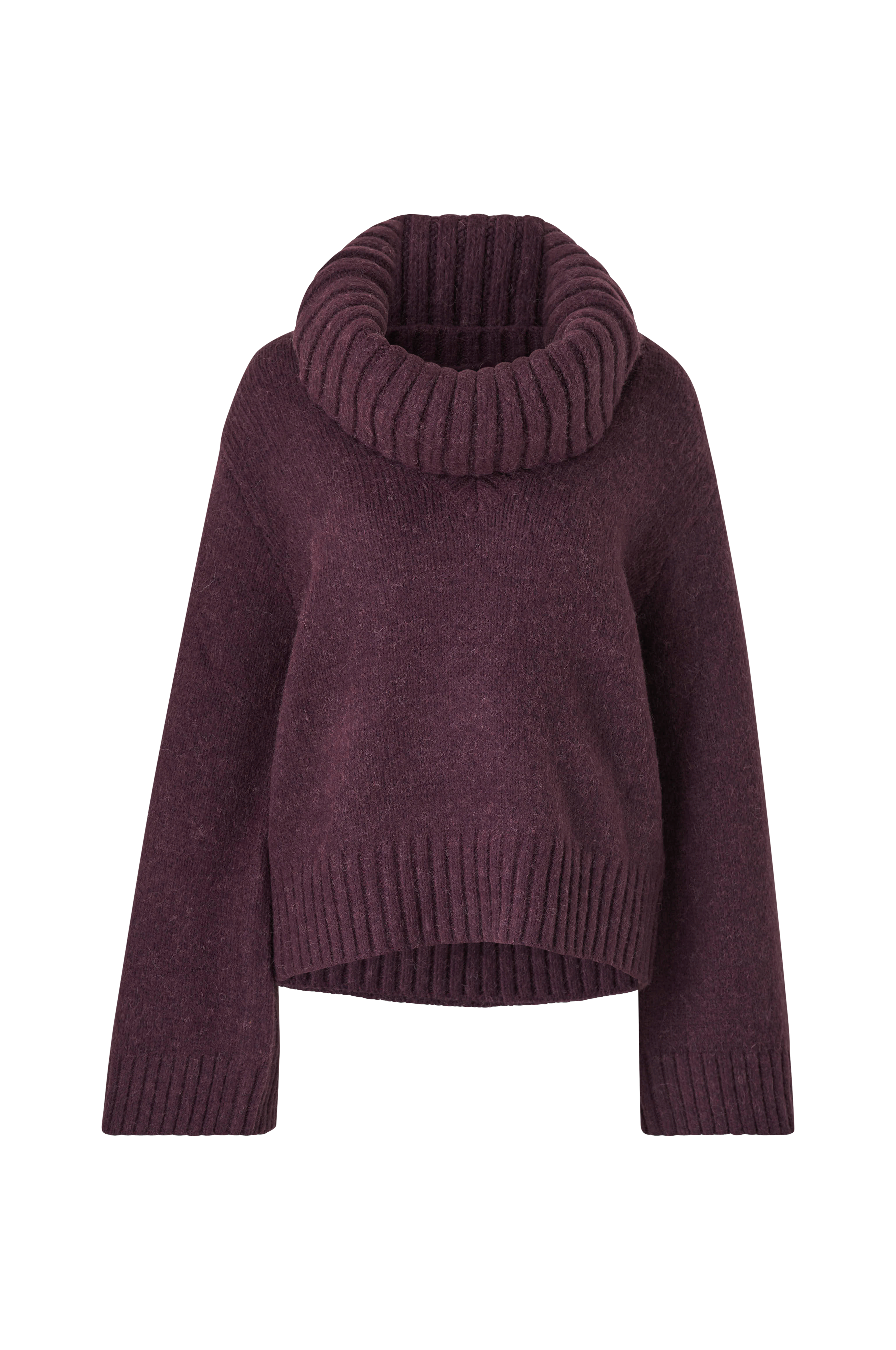 • Strikket trøje i blød kvalitet med uld og alpaka• Stor, ribbet, aftagelig sjalskrave• V-formet halsudskæring• Ribstrik ved manchetterne og nederst