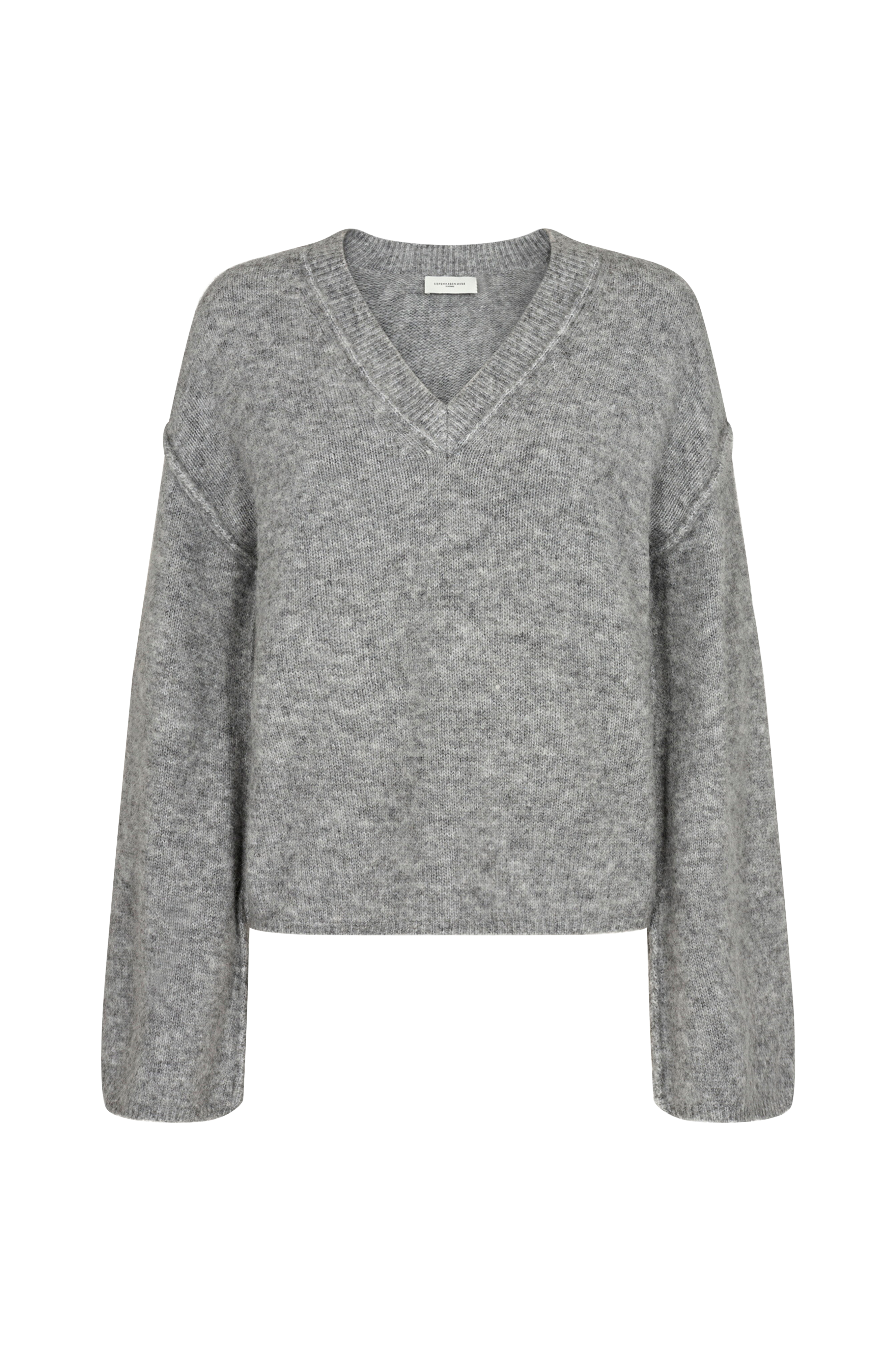 • Strikket trøje• Fremstillet af blød alpacablanding• Afslappet pasform• V-formet halsudskæring med ribbet kant• Nedsænkede skuldre• Brede ærmer