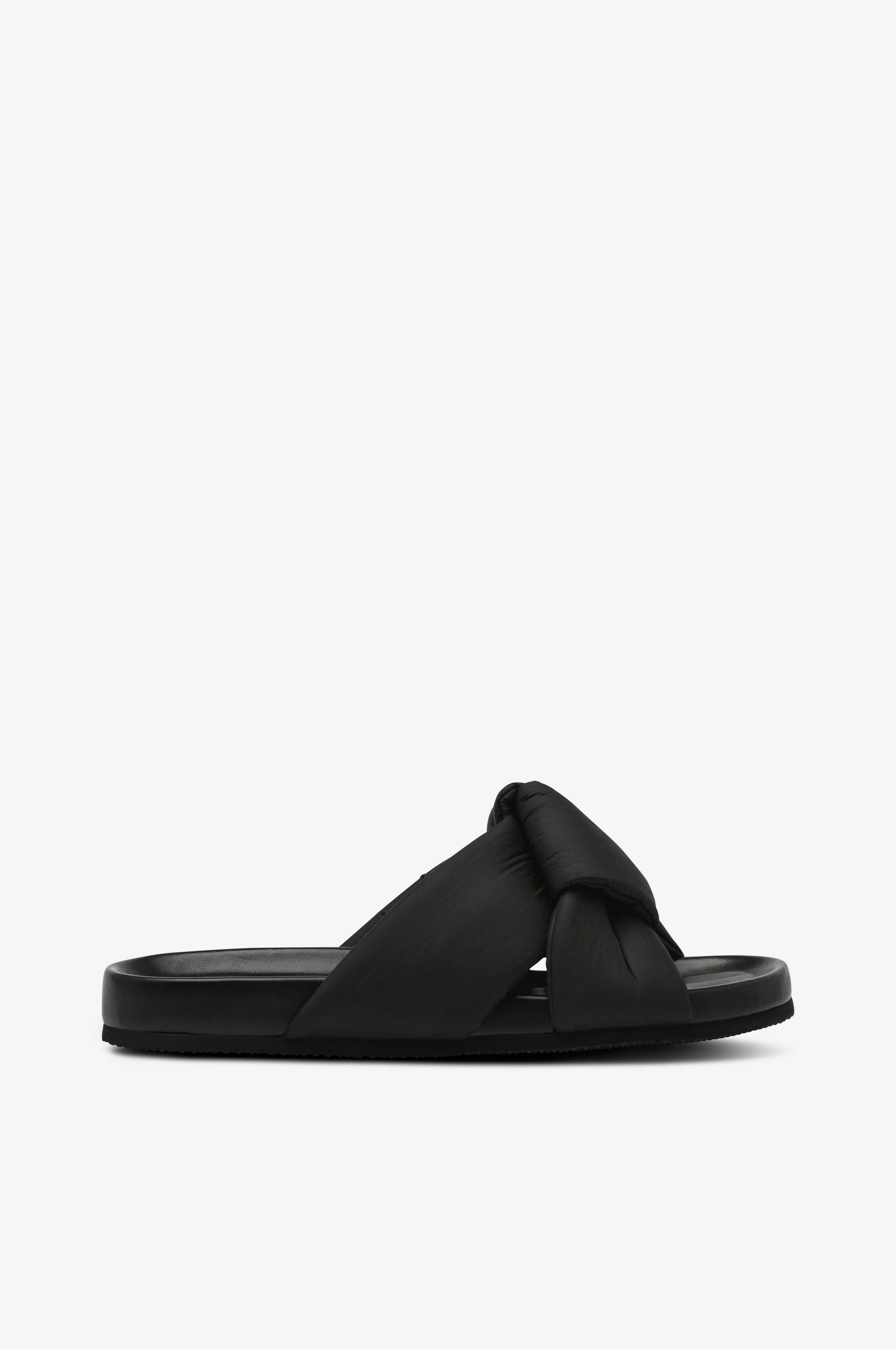 • Forede remme i tekstil• Knudedetalje• Læderbetrukket fodseng• Opfattes som lidt lille i størrelsen, så hvis du er mellem to størrelser, skal du vælge den største.