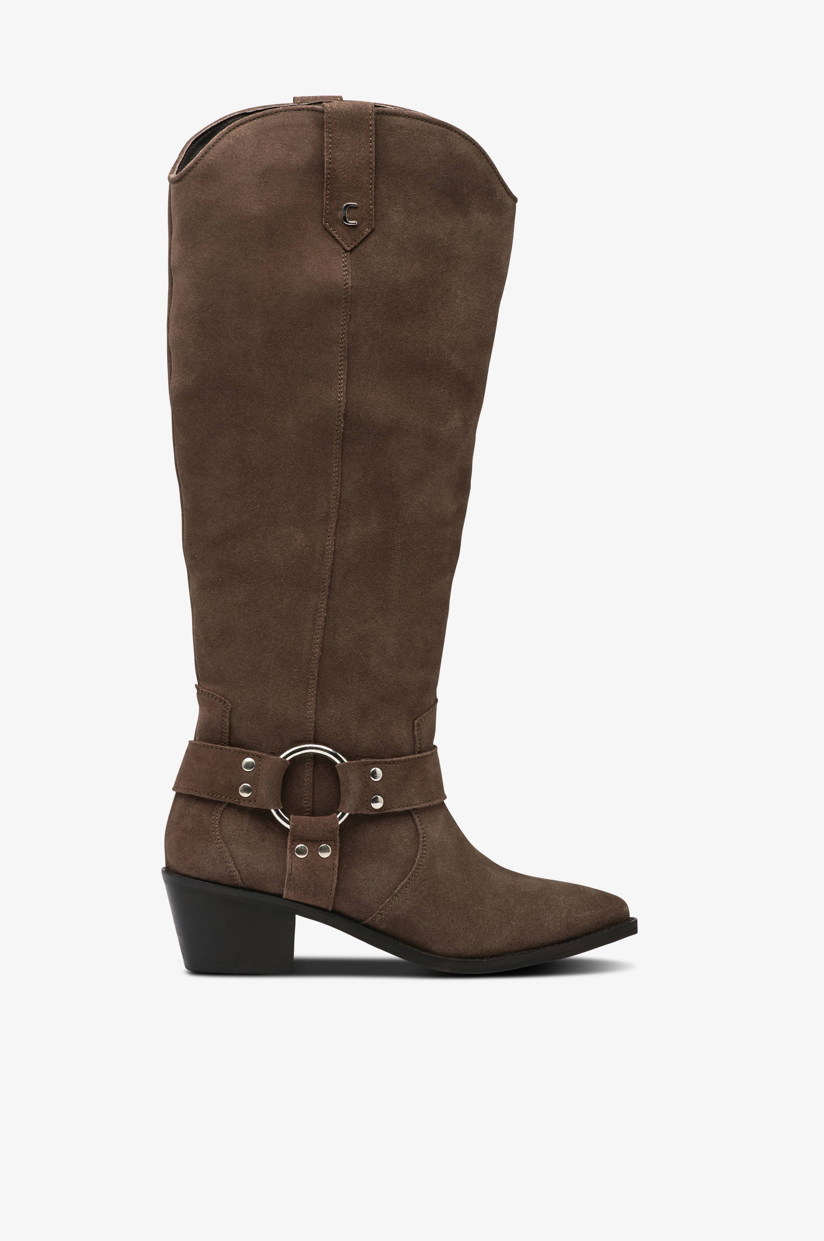 • Model i ruskind i cowboystil• Spids snude• Remme med metaldetalje omkring anklen• Trækstropper på toppen• Tekstilforing• Indersål i læder• Hælhøjde: 5,5 cm