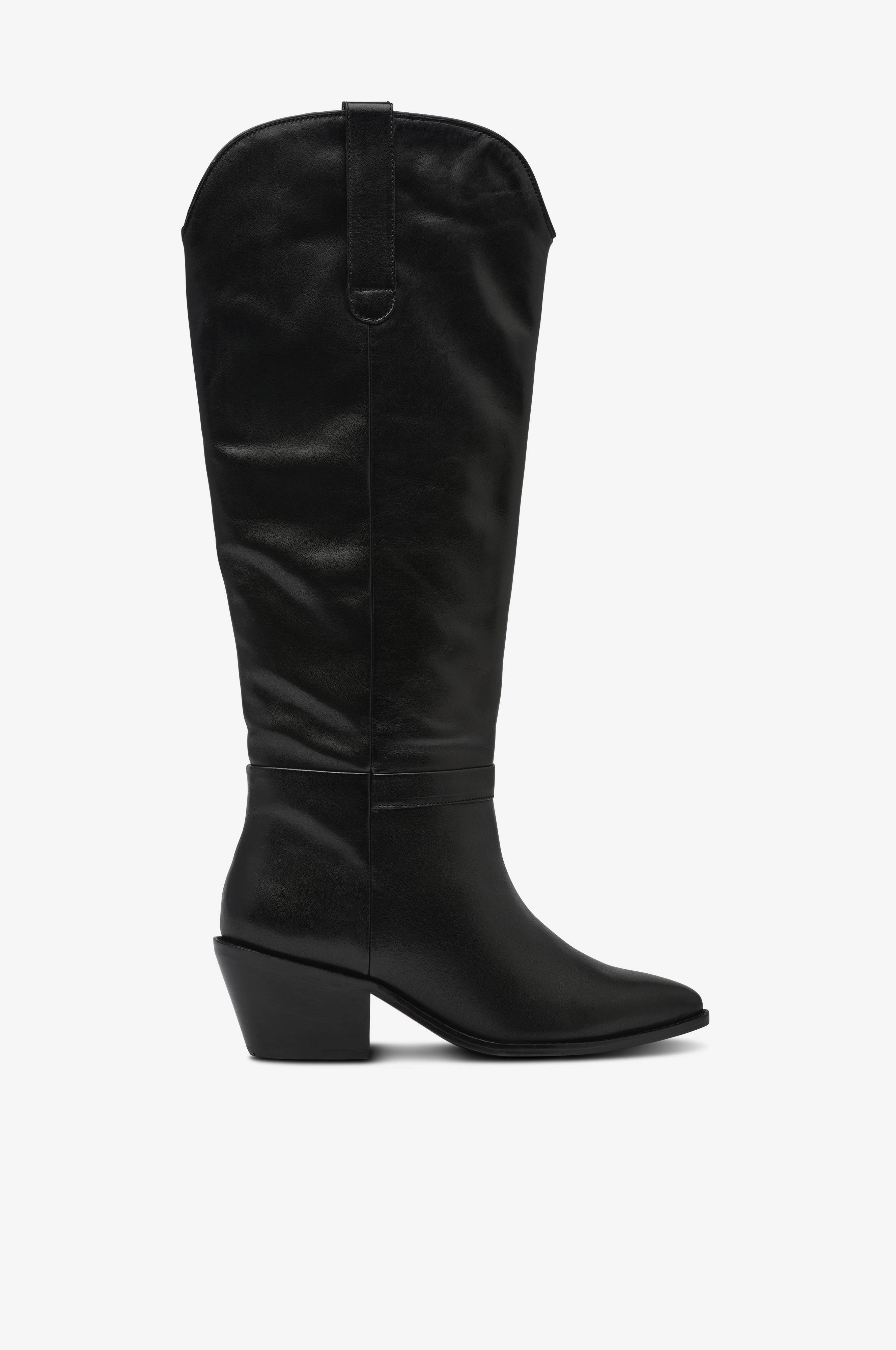 • Støvler i læder med blokhæl• Dekorativ detalje på skaftet• For i tekstil og læder• Spids tåform• Skafthøjde: 41 cm i str. 37• Hælhøjde: 5 cm
