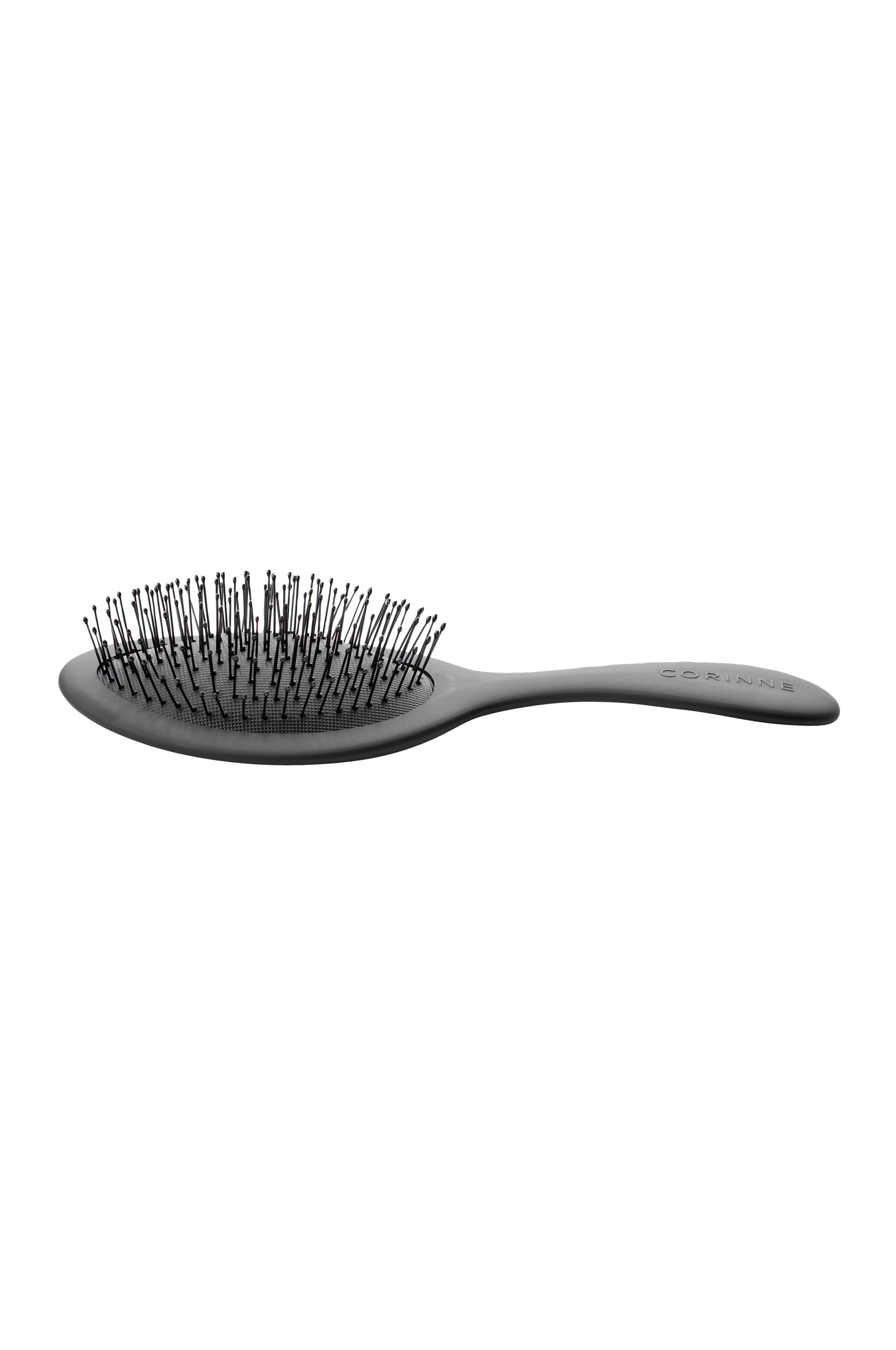 Hårbørste med skånsomme børster af nylon til vådt hår. Hårbørsten leveres i en praktisk toilettaske.