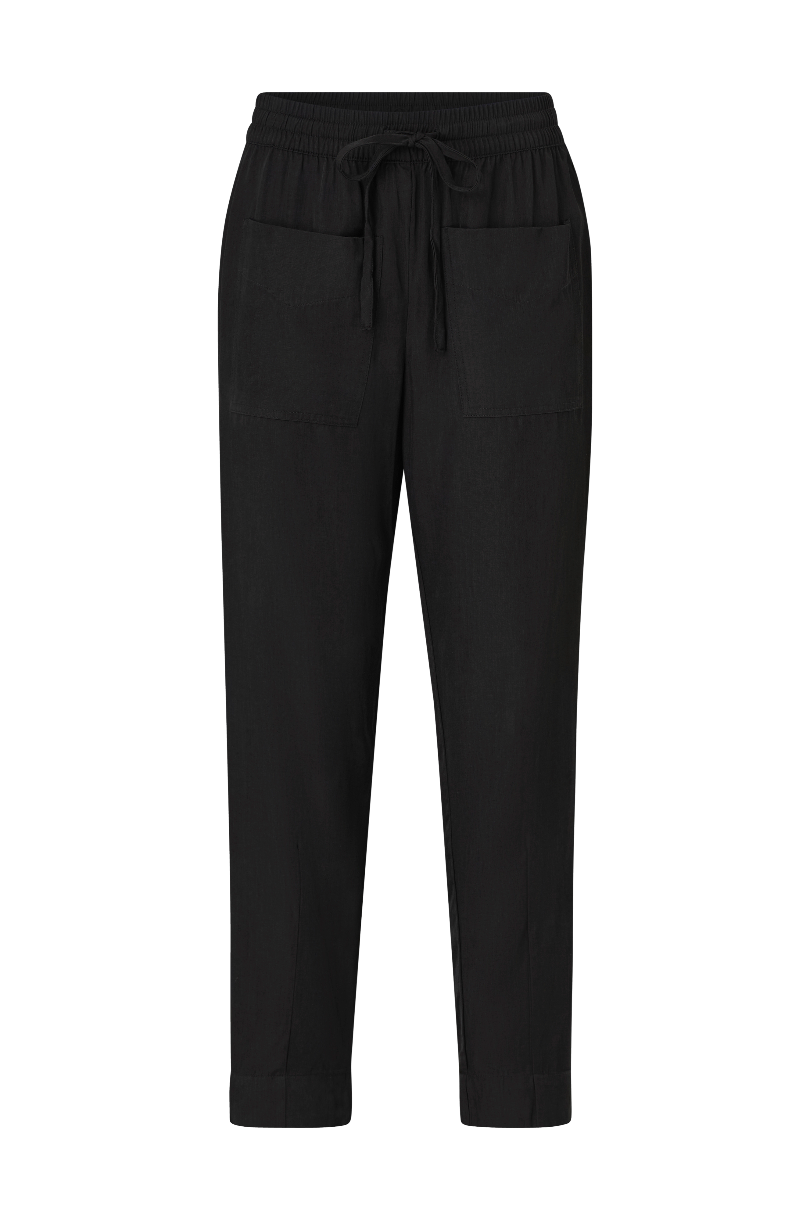 • Indsnævrende pasform• Ankellange ben• Kvalitet med glans• Elastisk talje med træksnørre• Påsyede lommer foran• Snydelommer bagpå• Indre benlængde: 68 cm i størrelse S