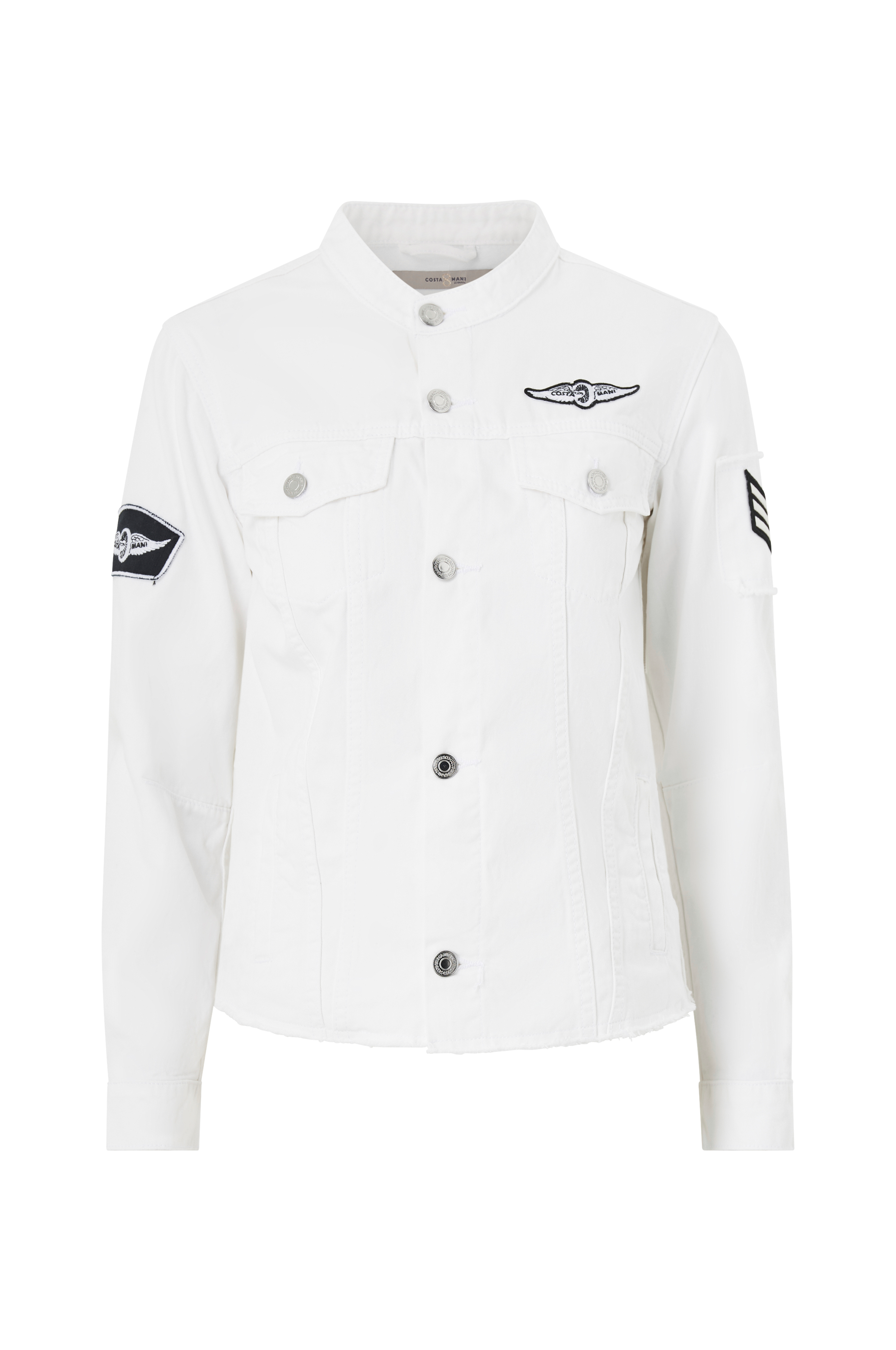 • Cowboyjakke med rund krave• Metalknapper• Påsyede patches på ærmerne og ved fronten• Rå søm• Lynlåse ved ærmeafslutningerne• Sidelommer• To brystlommer med påsyede lommelåg• Længde: 57 cm i størrelse S