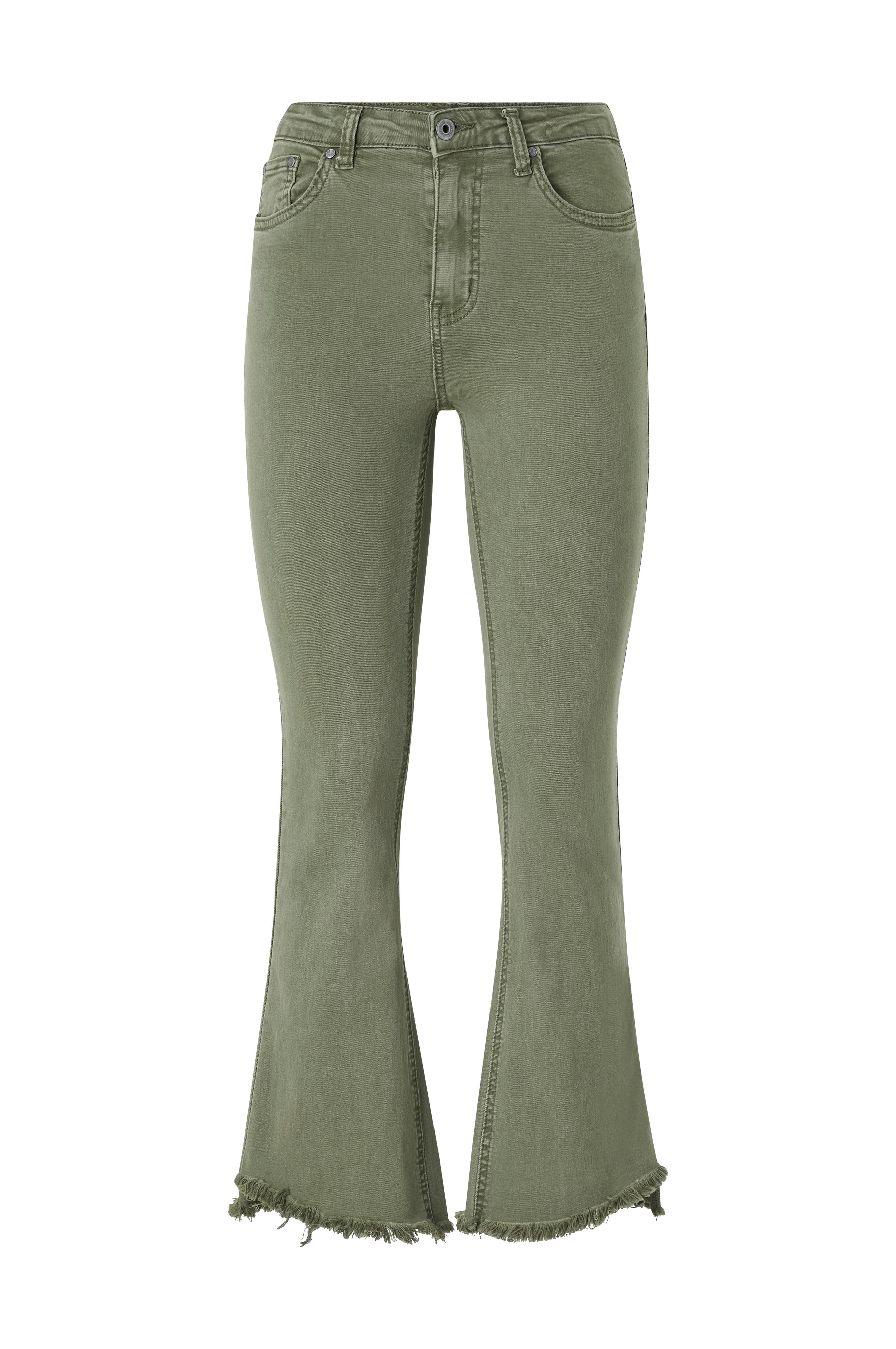 • Høj talje• Smal pasform• Benafslutninger med svaj med rå, frynsede kanter• Femlommemodel• Gylp med lynlås• Stræk• Indre benlængde: 67 cm i størrelse