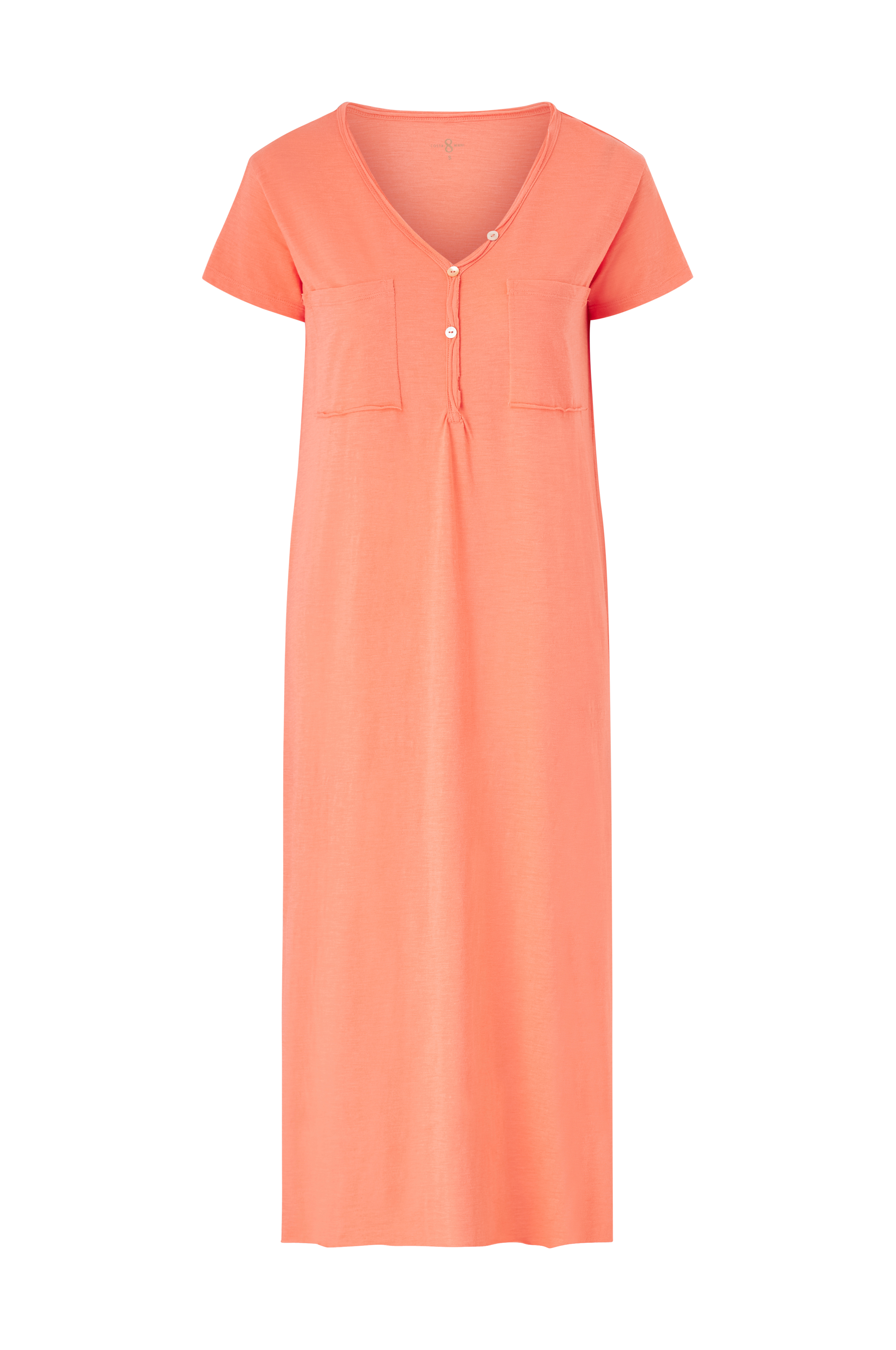 • Kjole med let struktur• V-udskæring• Falsk knappelukning foran• Brystlommer• Slids nede i siderne• Normal pasform• Længde: 119 cm i størrelse S