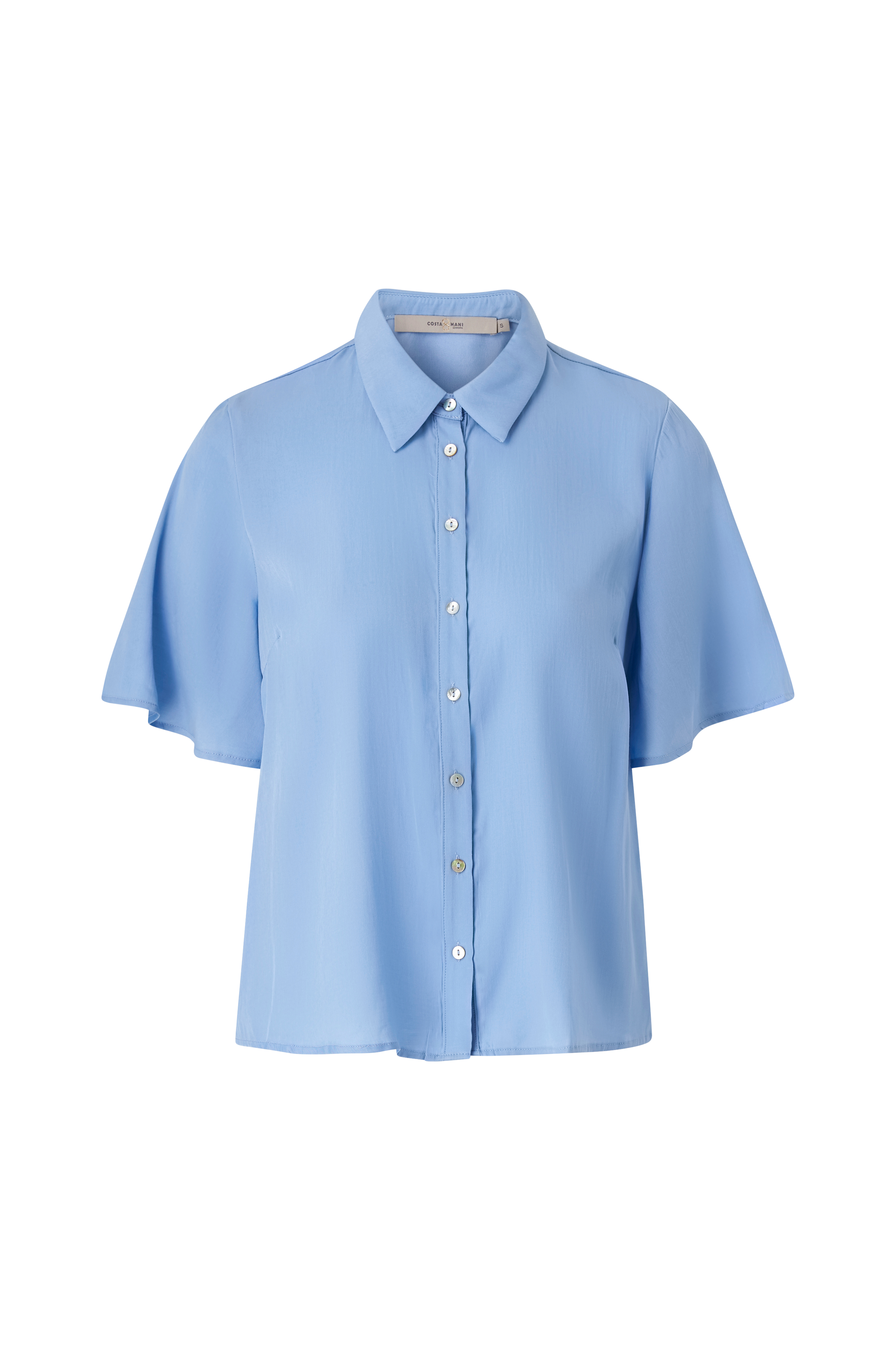 • Skjorte i viskose med glans• Skinnende tryk på ryggen• Korte sommerfugleærmer
