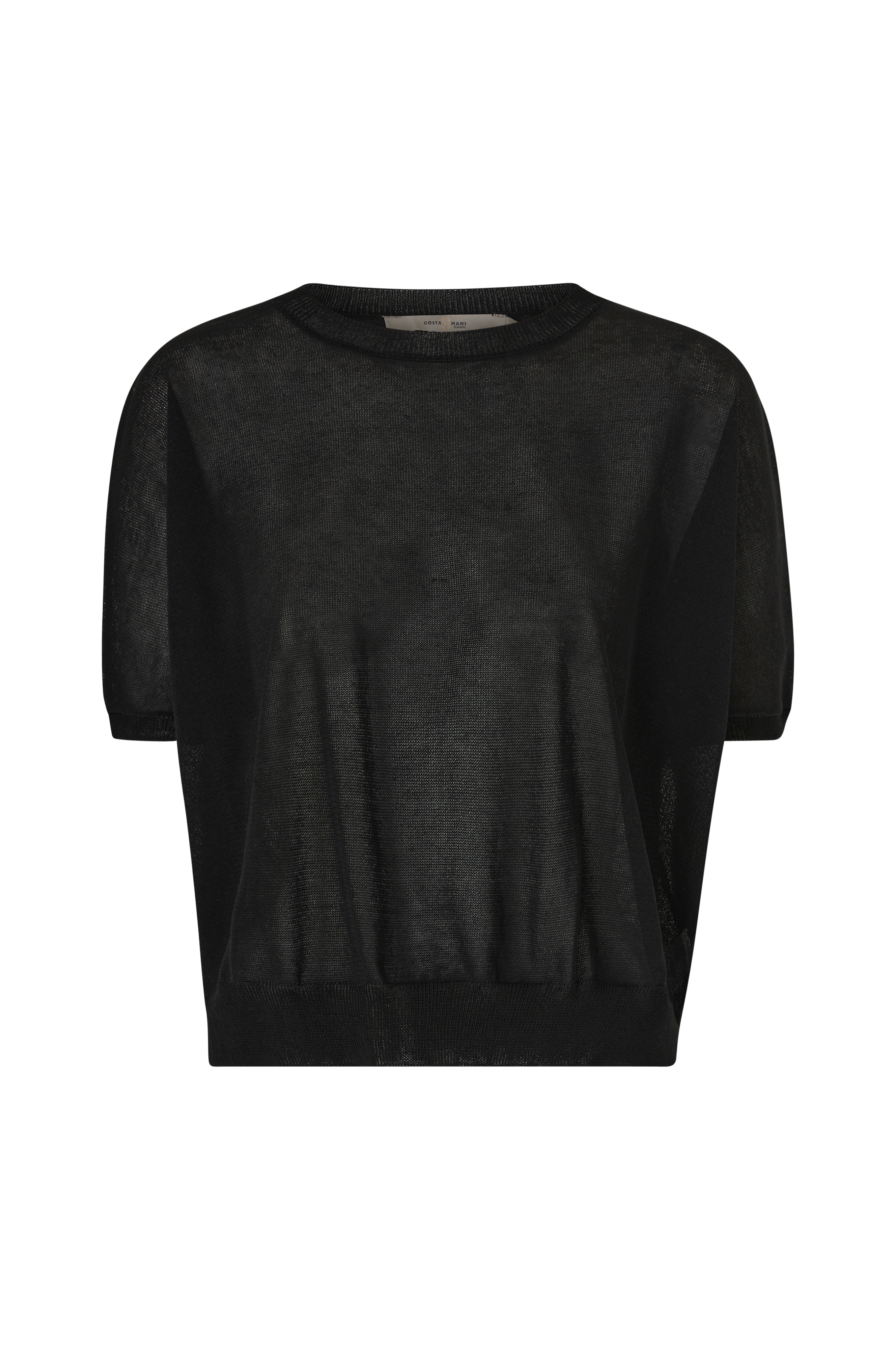 • Fintstrikket model med oversize pasform• Rund hals med ribstrik• Nedsænket skulder med kort kimonoærme• Ribstrik ved manchetterne og ved nederste kant• Korte ventilationer nede i siderne