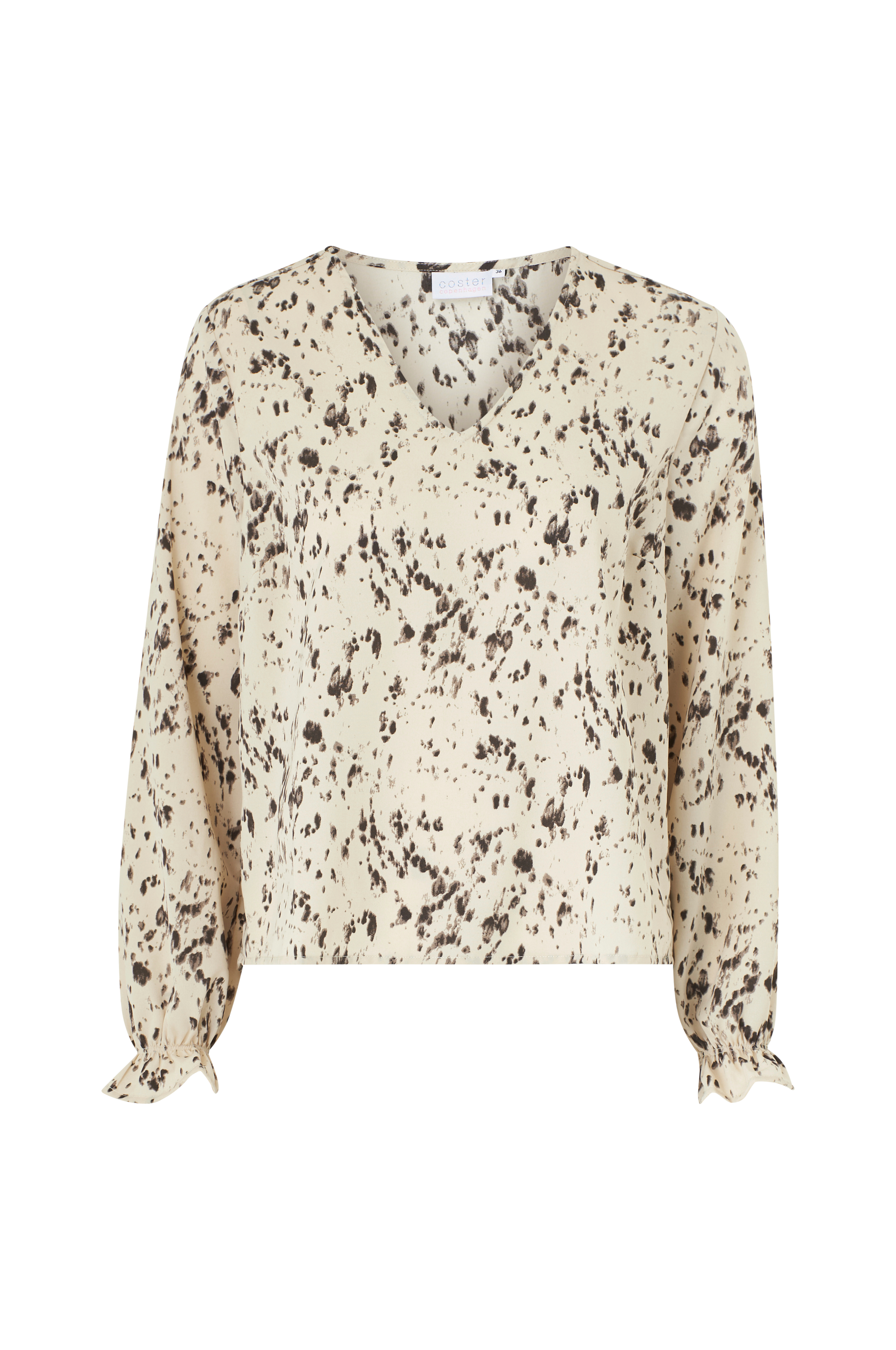• V-udskæring• Elastiske manchetter med volant• Rynket søm i ryggen