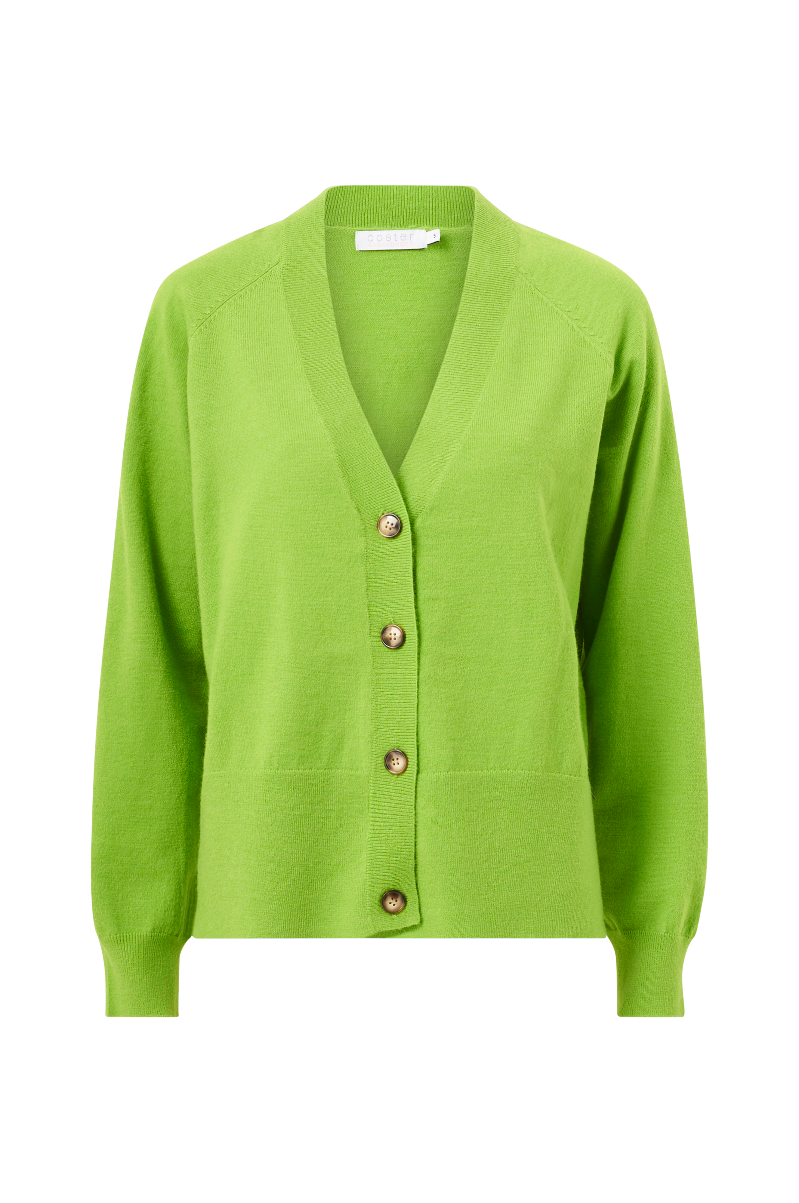 Strikket blød cardigan i uldblanding. V-formet halsudskæring og raglanærme. Slids forneden i siderne. Ribkanter i ærmekanter og forneden.