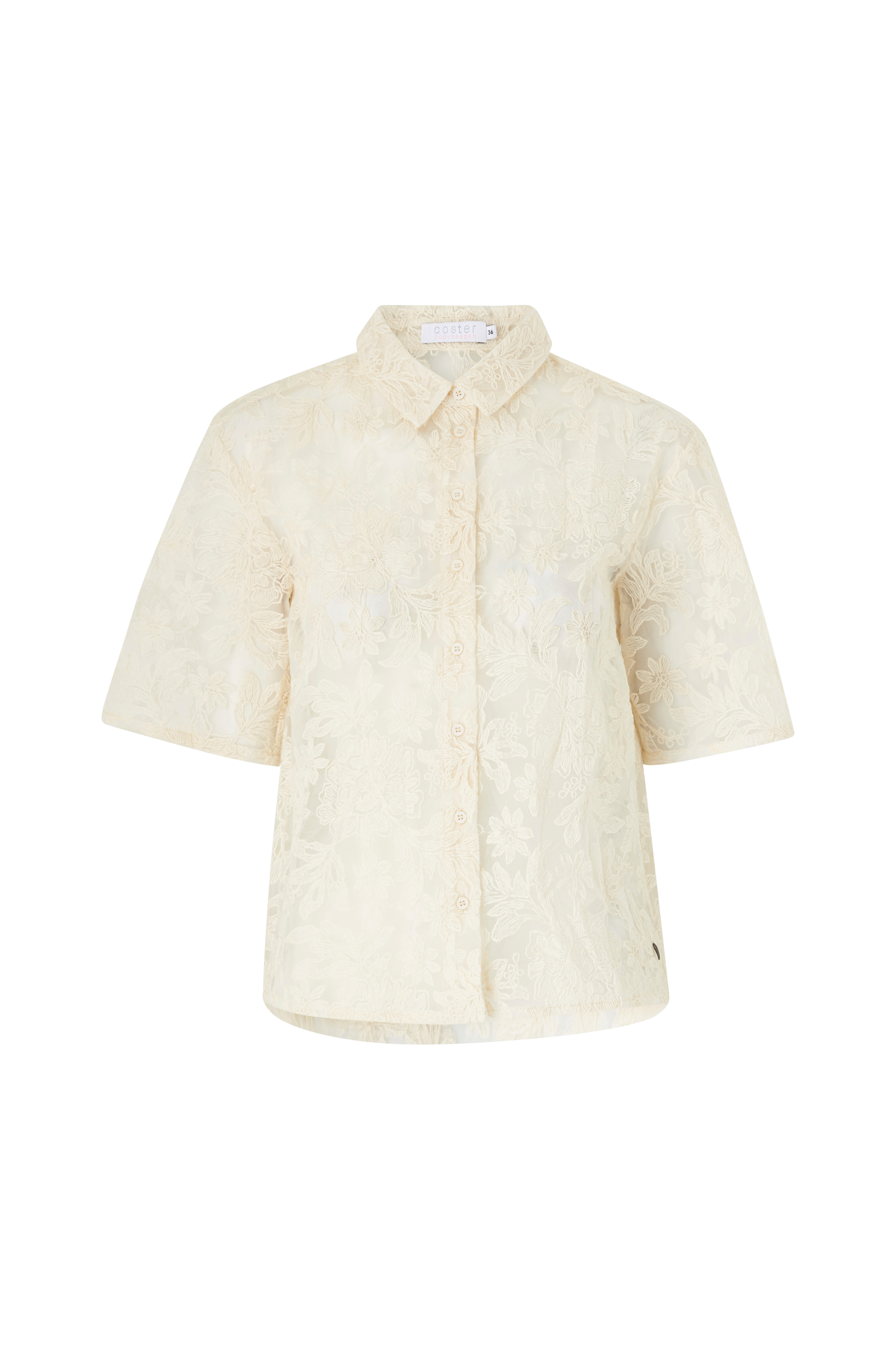 • Transparent skjorte med broderet mønster• Korte ærmer• Knapper foran