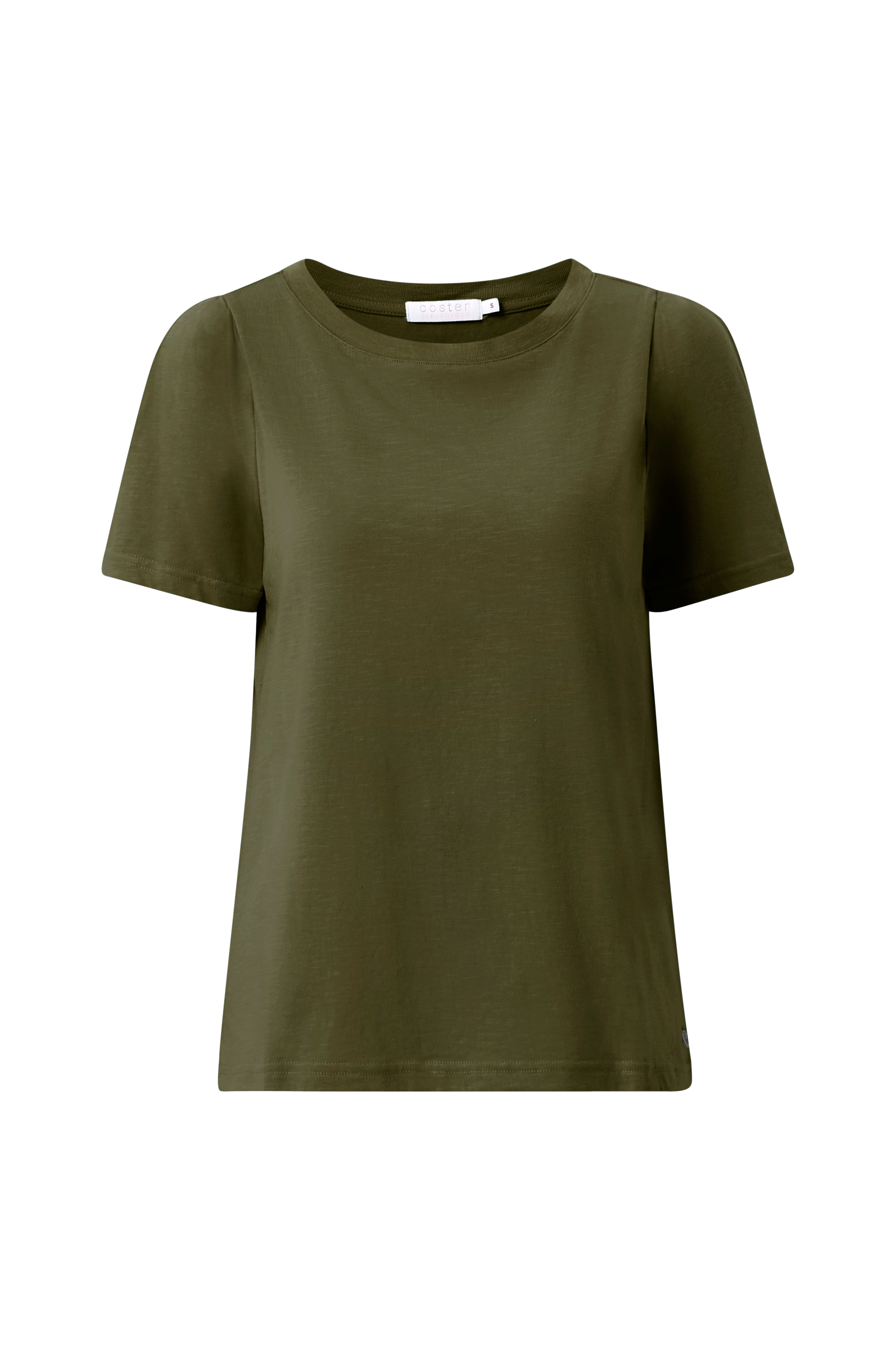 • Lige model• Rund hals med dobbelte, rå kanter• Kort ærme med folder ved skulderen