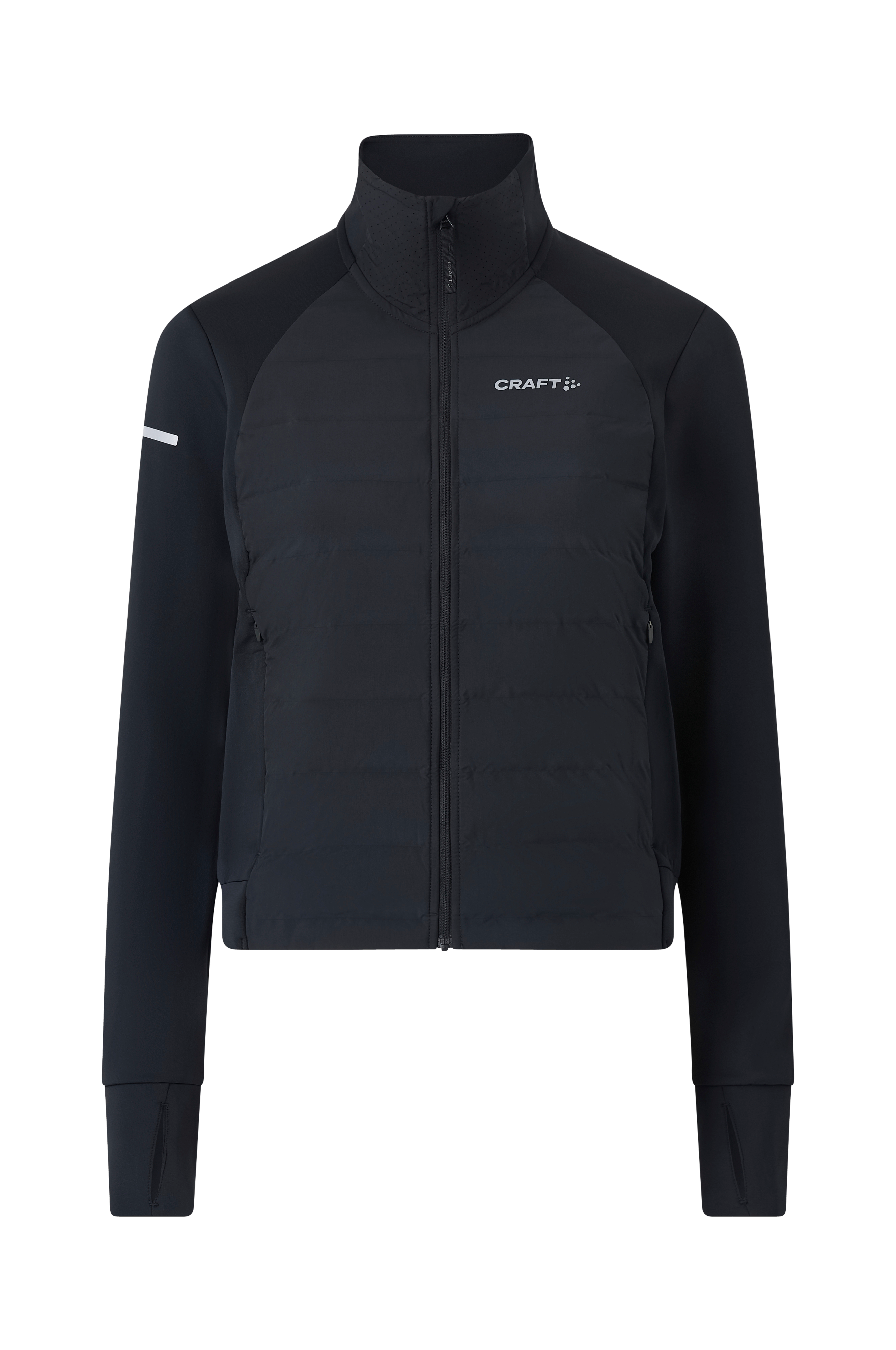 • Løbejakke med quiltet, vindafvisende stof foran • Høj krave • Vind- og vandafvisende stof på halsen og oppe bagved • Tommelfingerhul ved manchetterne • Lynlåslukning • Hagebeskytter • Meshfor • Sidelommer • Refleksdetaljer • Normal pasform • Længde: 56 cm i størrelse S