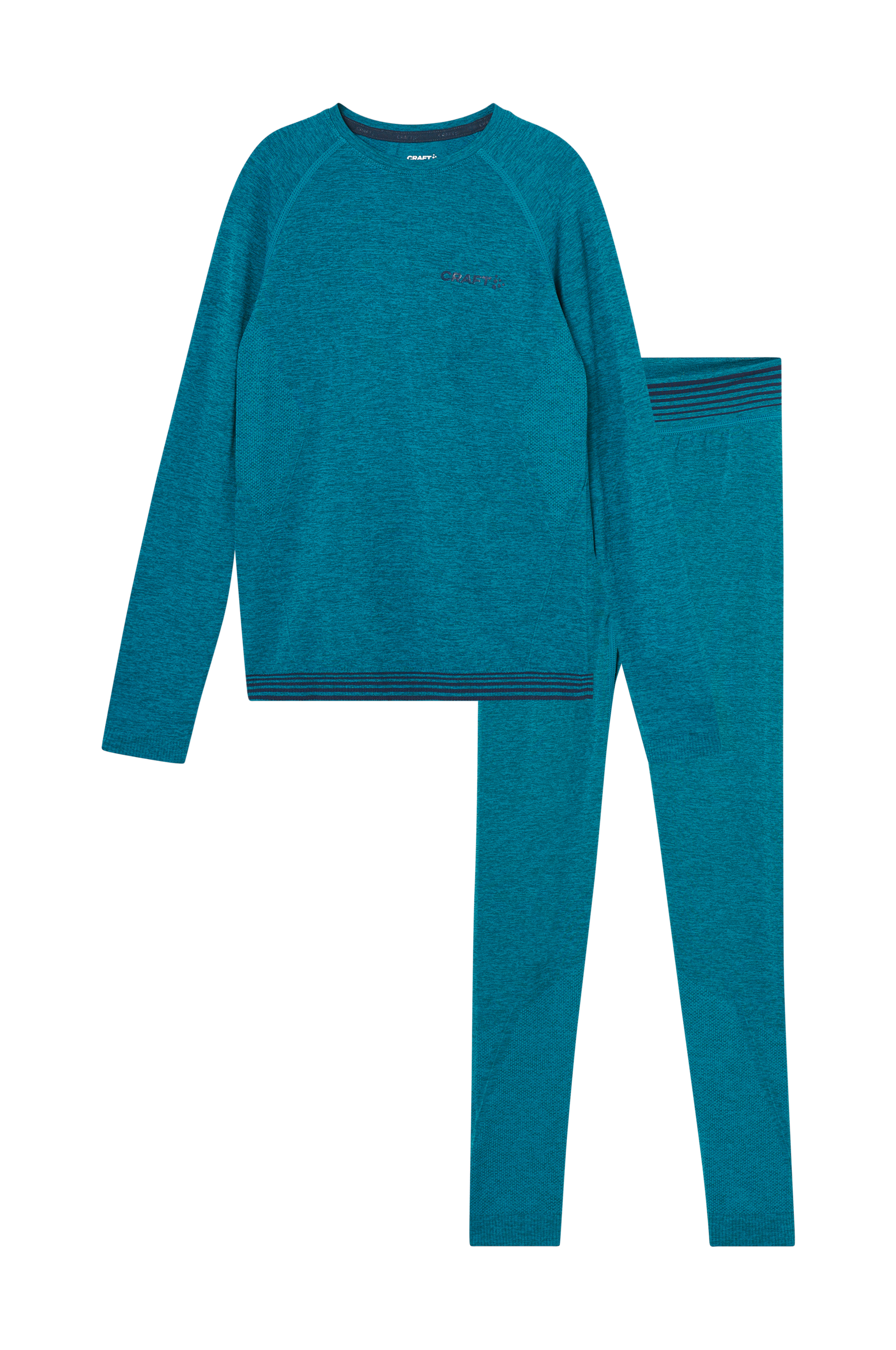 • 2-delt termoundertøj• Blødt, elastisk materiale med bløde, flade sømme• Langærmet trøje med rund hals• Minimalt antal sting• Raglanærmer• Bukser med elastisk talje• Ribmanchetter ved enden af benene