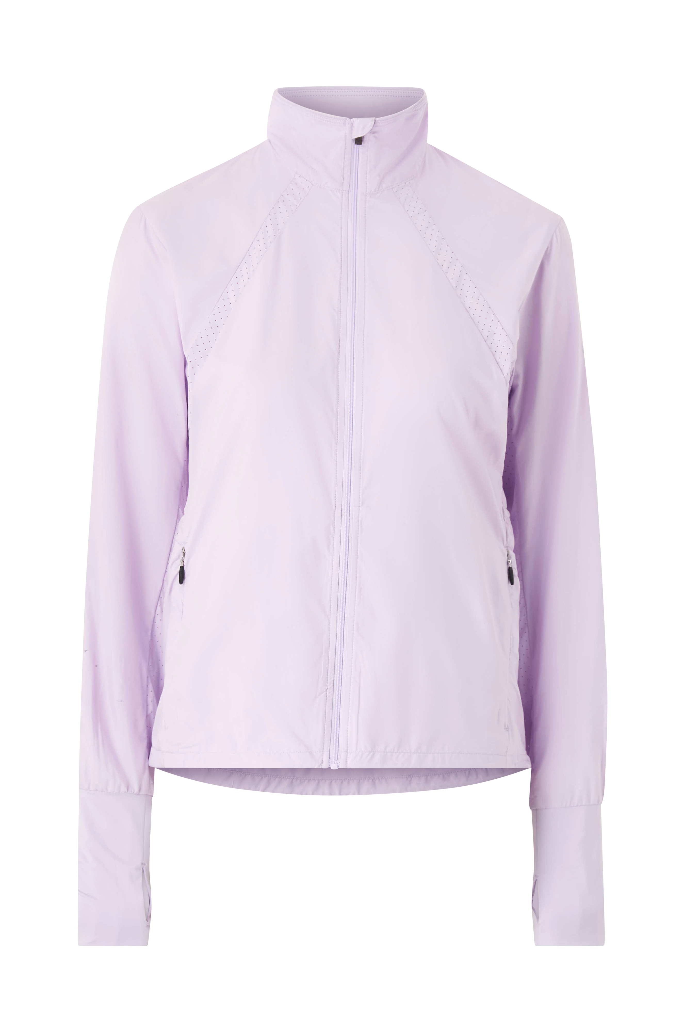 En alsidig træningsjakke til intensiv træning, løb og lignende aktiviteter. Jakken er lavet i et let, vind- og vandafvisende materiale af genindvundet polyester som giver effektiv fugttransport og har desuden perforeringer i bryst og armhuler for effektiv ventilation. Høj krave, lynlås og to lommer med lynlås.