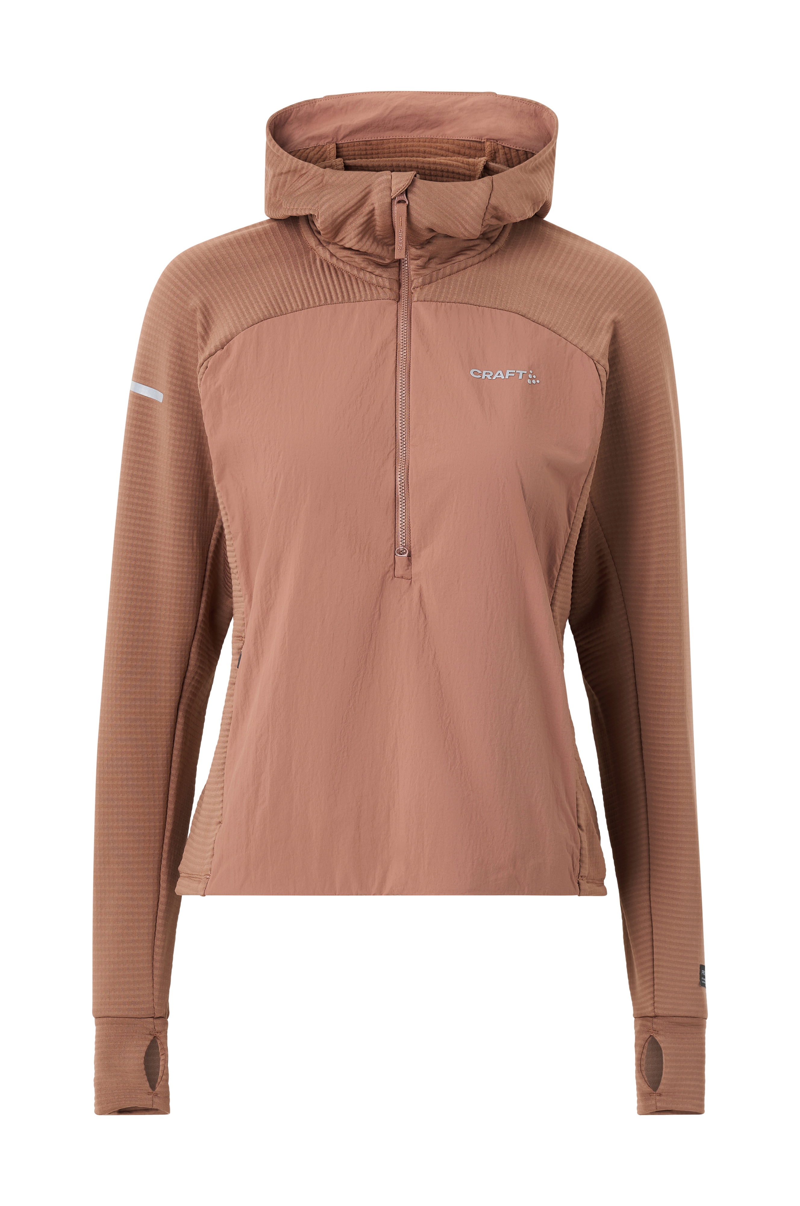 • Træningsjakke med varmende isolering• Åndbart, hurtigt tørrende materiale• Fast hætte• Tommelfingerhul ved manchetterne• Lynlåslukning• Hagebeskytter• Blødt for• Reflekterende logoprint på brystet• Refleksdetaljer• Justérbar søm• Normal pasform