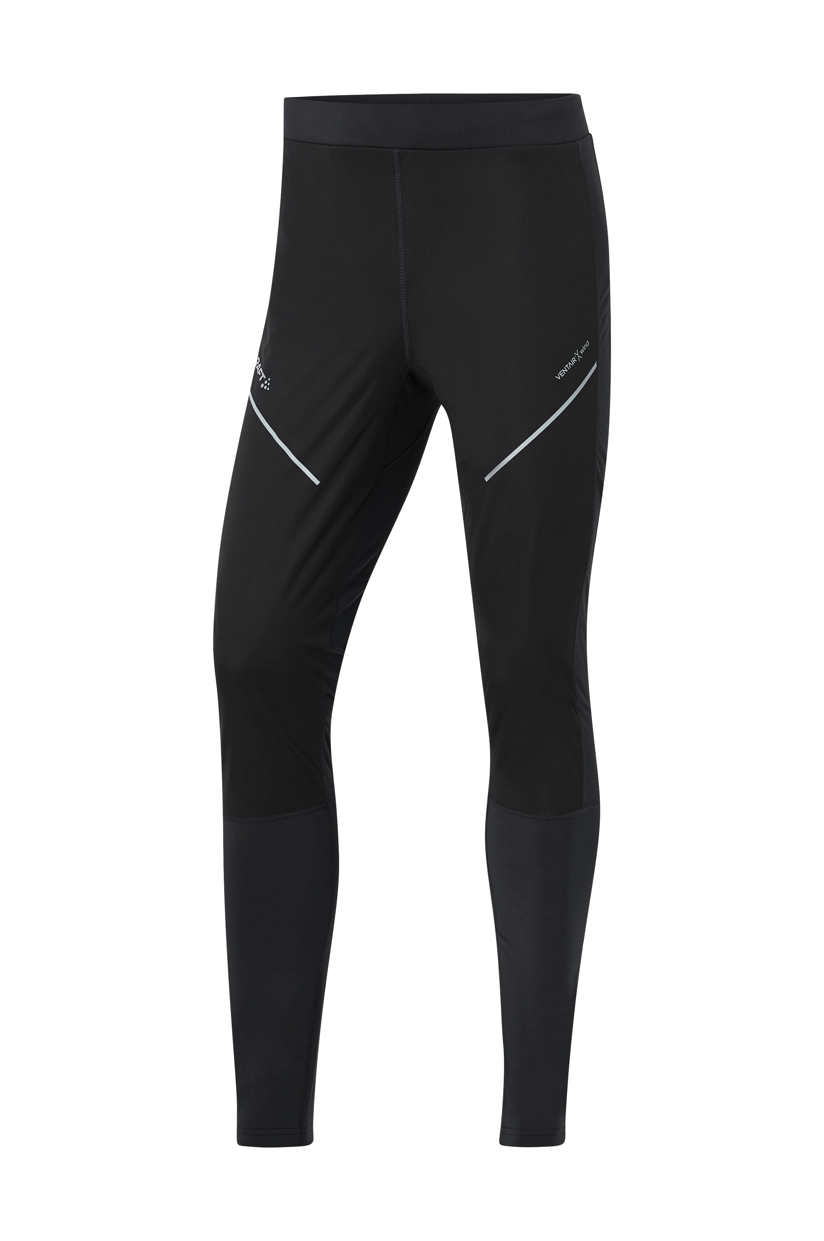 Træningstights ADV Essence Wind Tights M fra Craft, højfunktionelle træningstights til træning i koldt og blæsende vejr. Blødt stretchmateriale med vindtæt front og blød børstet inderside. Elastisk linning med indvendig løbegang. Lomme med lynlås i den ene side. Refleksprintede detaljer.