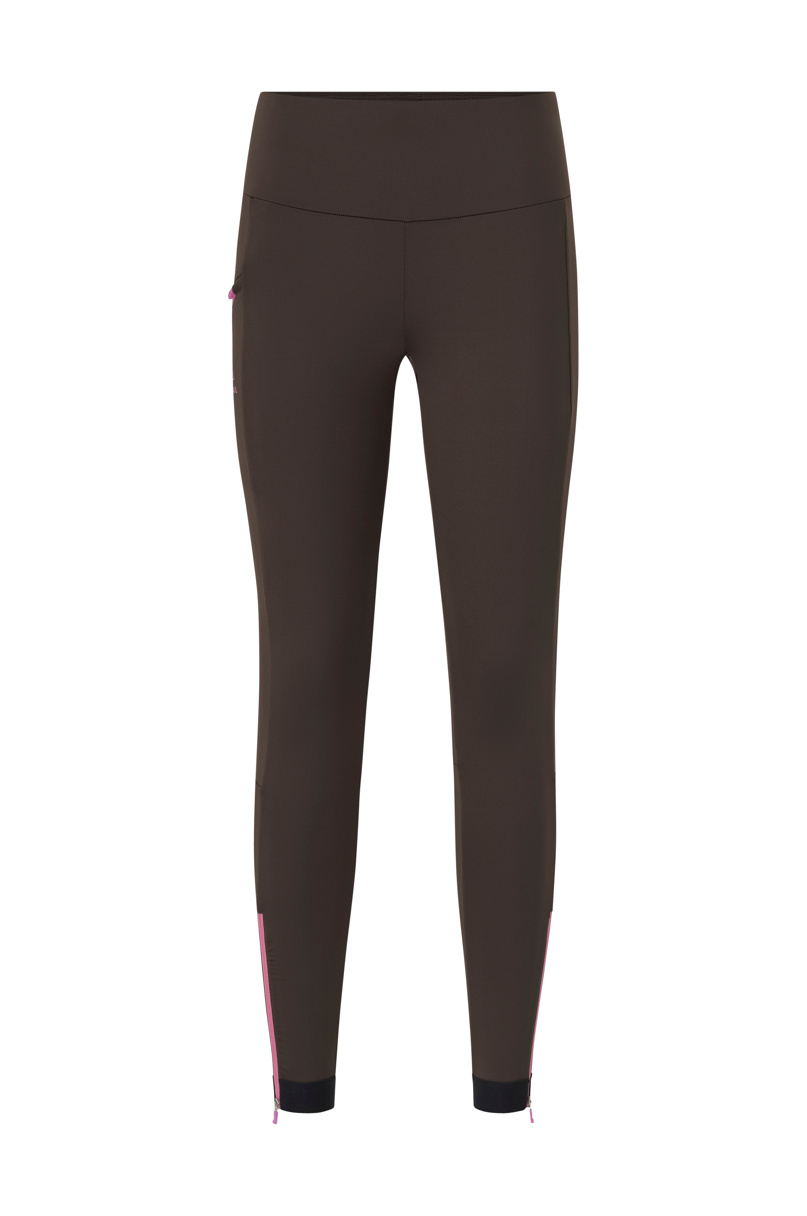 • Blød, fugttransporterende stretchtrøje• Talje med elastik og indvendig træksnørre• Lynlåslomme på hoften• Mobillomme bagpå• Lynlås nederst på benene med elastik ved enden af benene