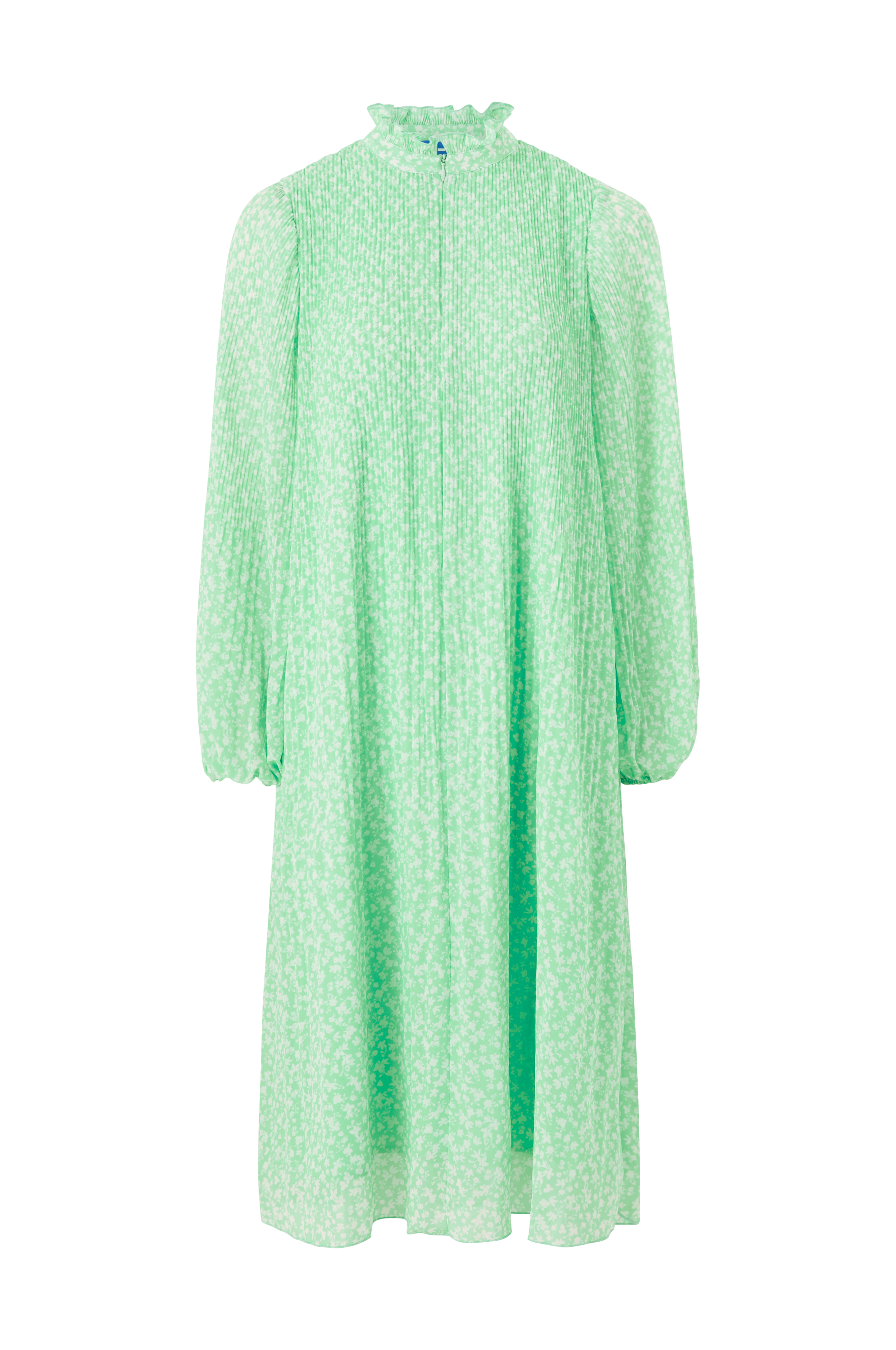 • Plisseret kjole• Løs pasform• Vævet for• Høj, rund halsudskæring• Kort lynlås foran• Lange ærmer med elastisk bånd ved manchetterne• Længde: 114 cm i størrelse 36