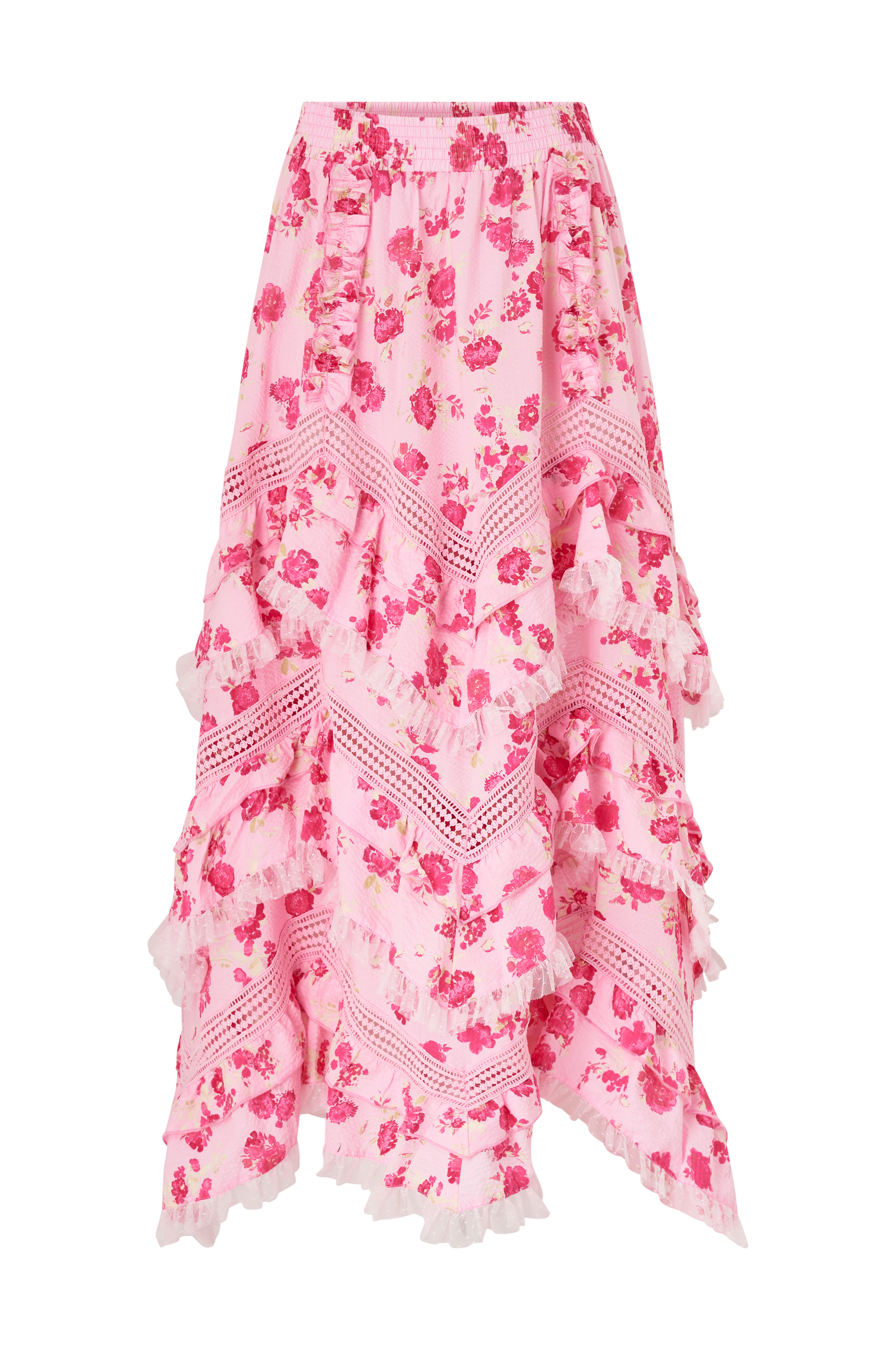 • Lang nederdel med svaj med volanter• Elastisk talje• Hulmønstrede blondedetaljer• Længde: 98 cm i størrelse 36