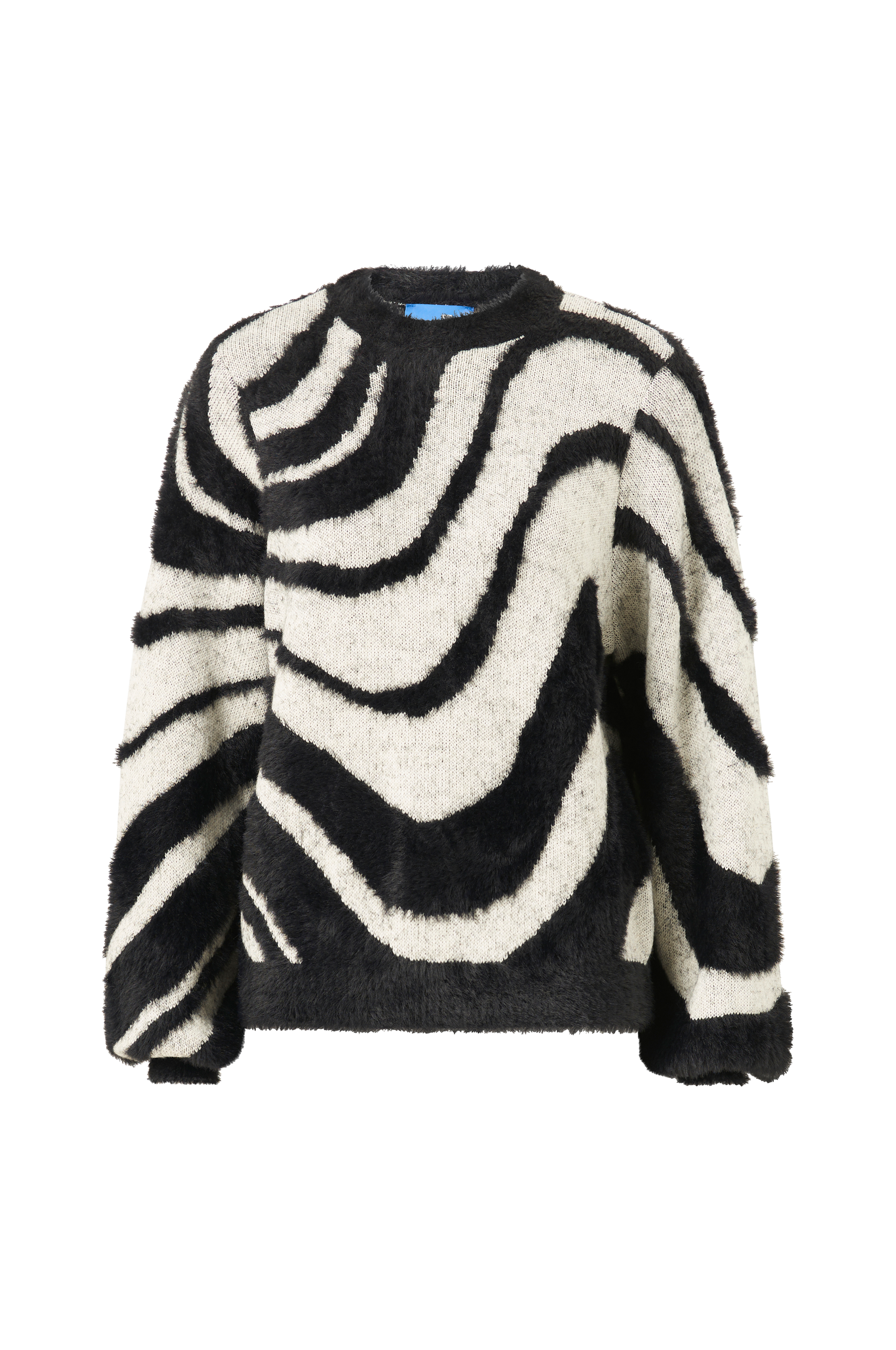 • Strikket trøje i uldmiks med håret mønster• Løs pasform• Ballonærmer