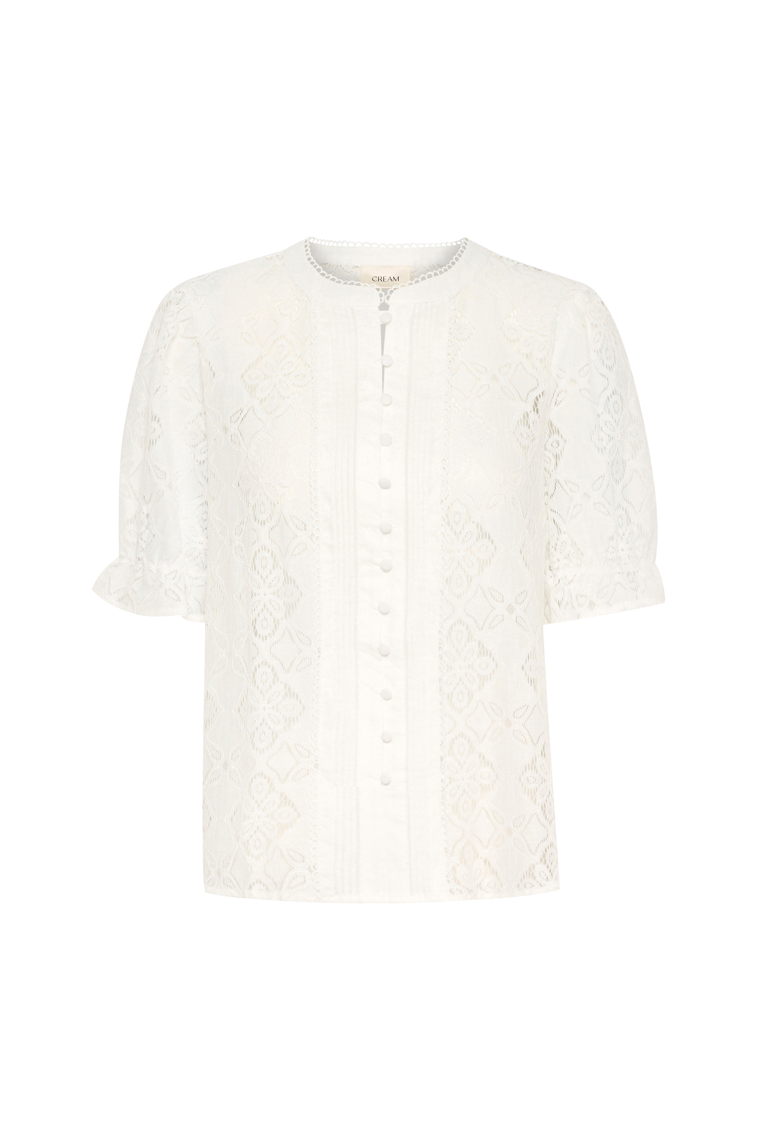 • Model i blonde• Rund hals• Syede biselæg på brystet• Beklædte knapper hele vejen frem• Ballonærme med elastik nederst