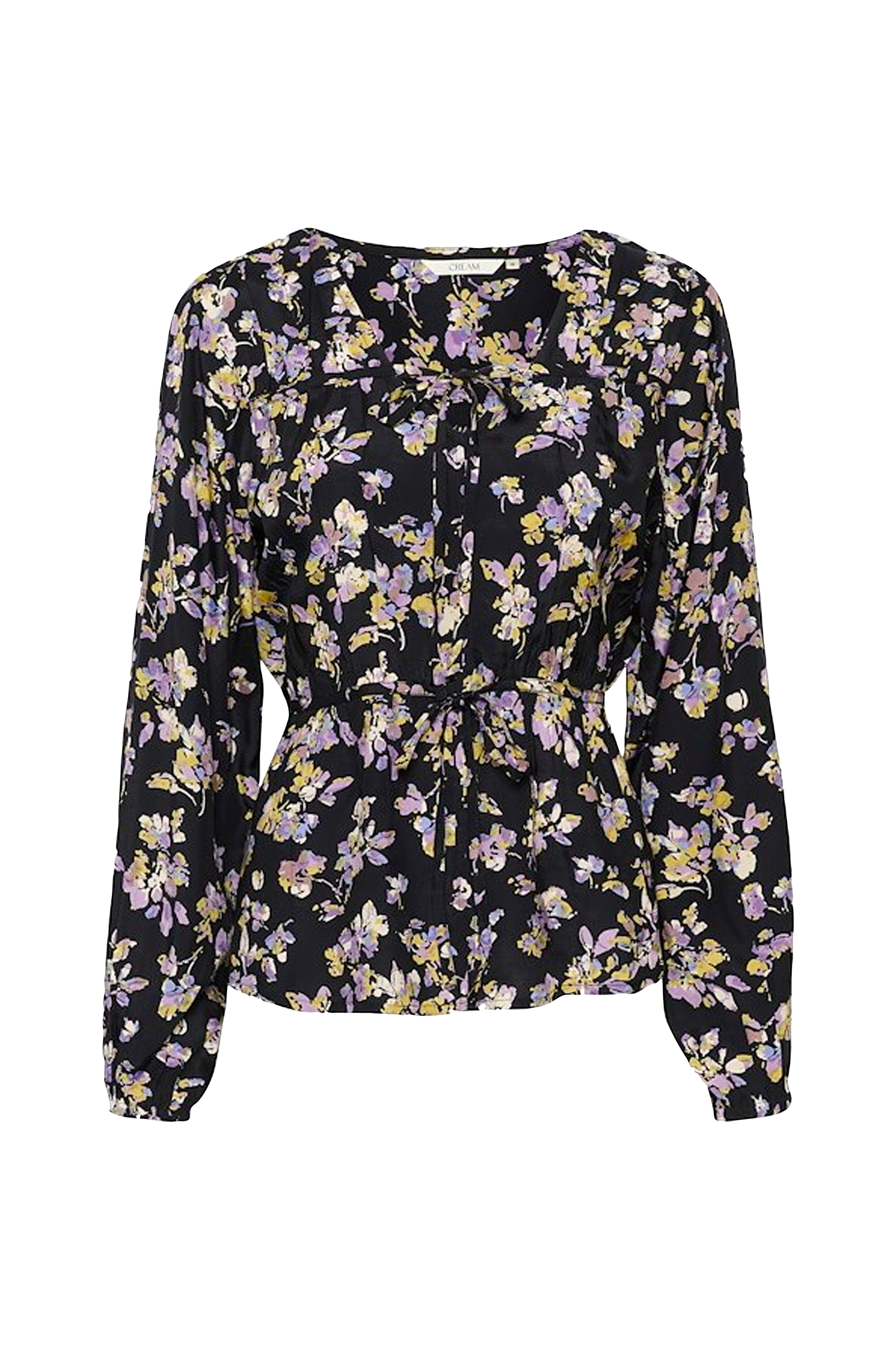 • Bluse i viskose med printet blomstermønster• Rund halsudskæring• Bindebånd foran på taljen• Lange ærmer med elastik ved manchetterne