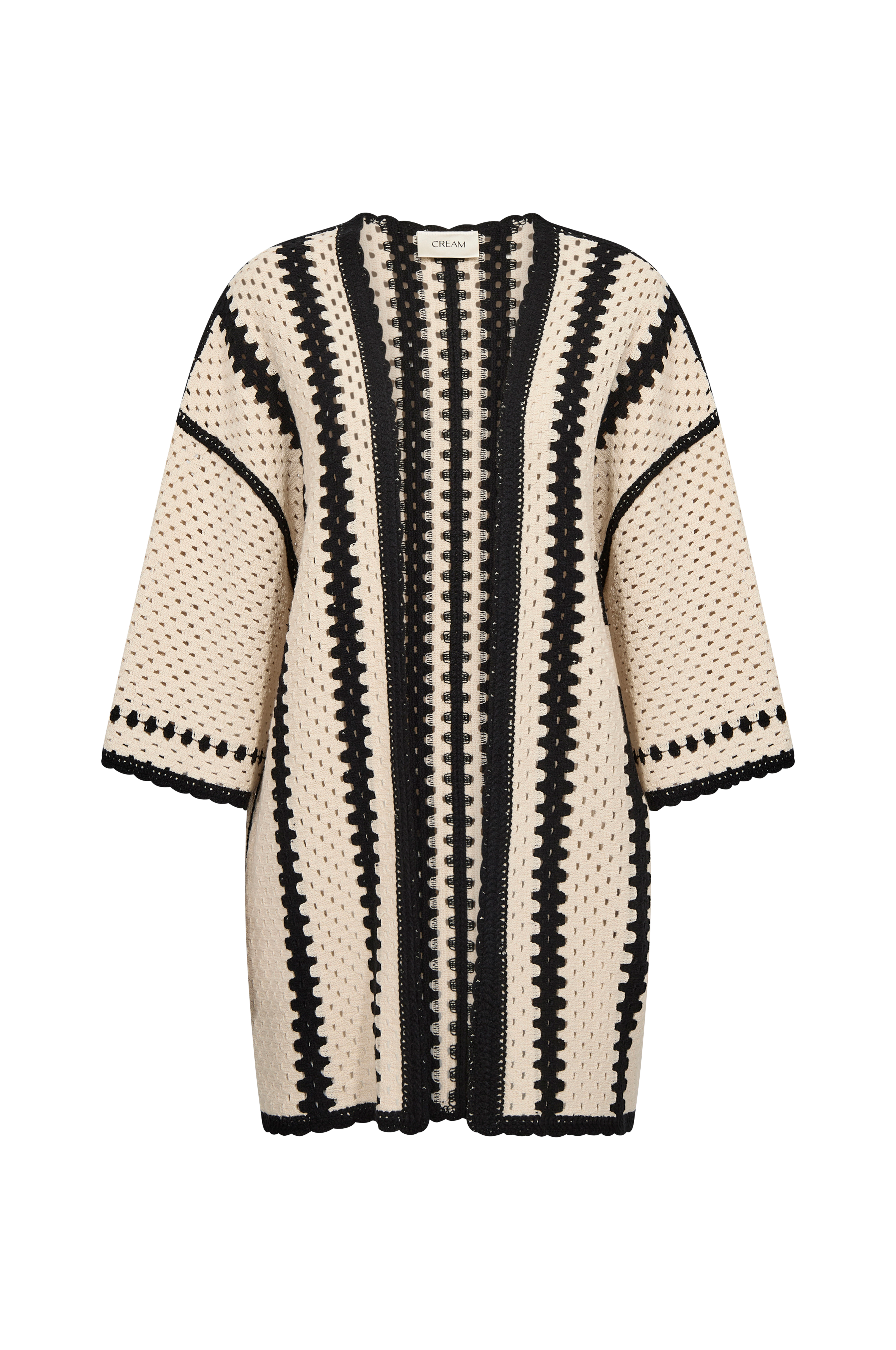 • Lige, mønstret model• Nedsænket skulder med bredt, halvlangt ærme• Uden at knappe