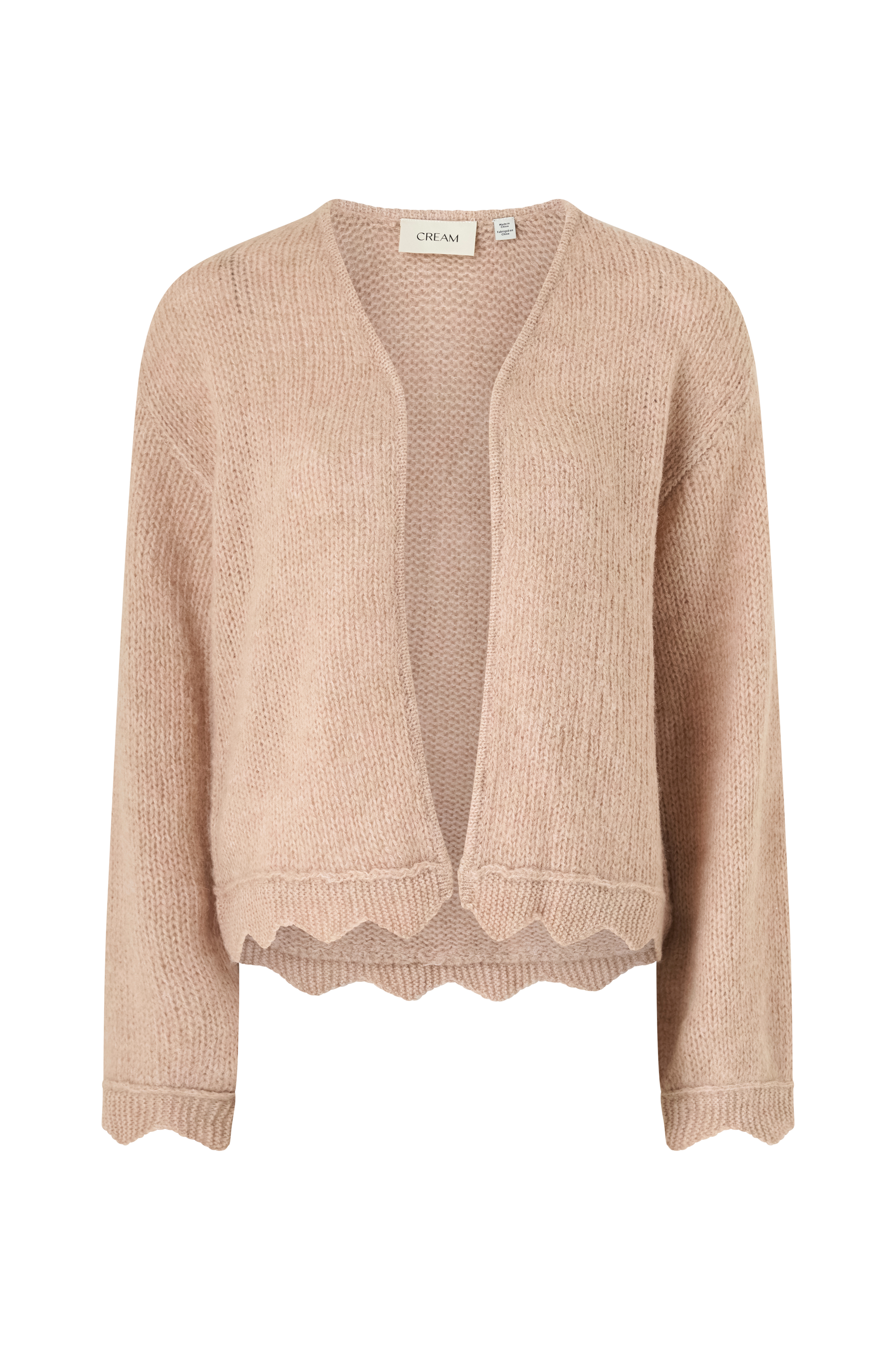• Løststrikket cardigan• Bølgede, ribbede kanter ved ærmeafslutningerne og nederst• Knapstolpe uden• Nedsænkede skuldre