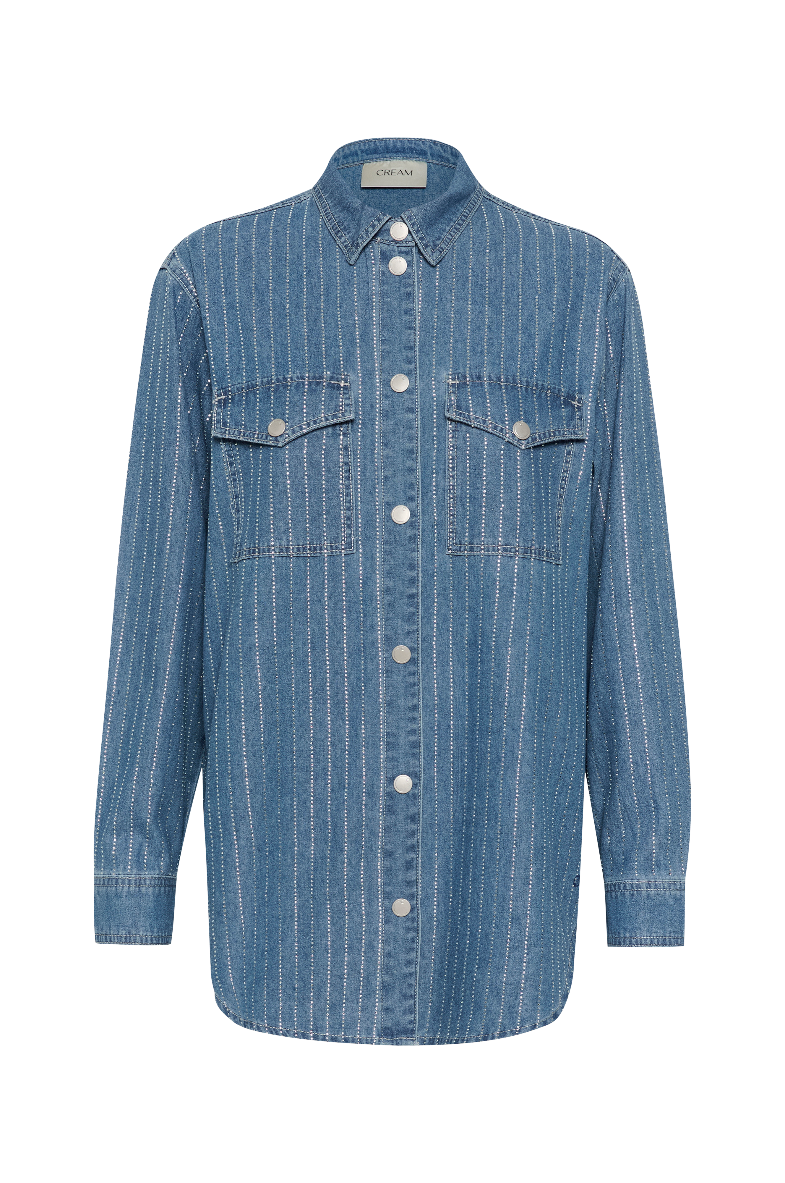 • Lige model med rhinstene foran og på ærmerne• Trykknapper• Brystlommer med låg• Langt ærme med manchet• Afrundet søm