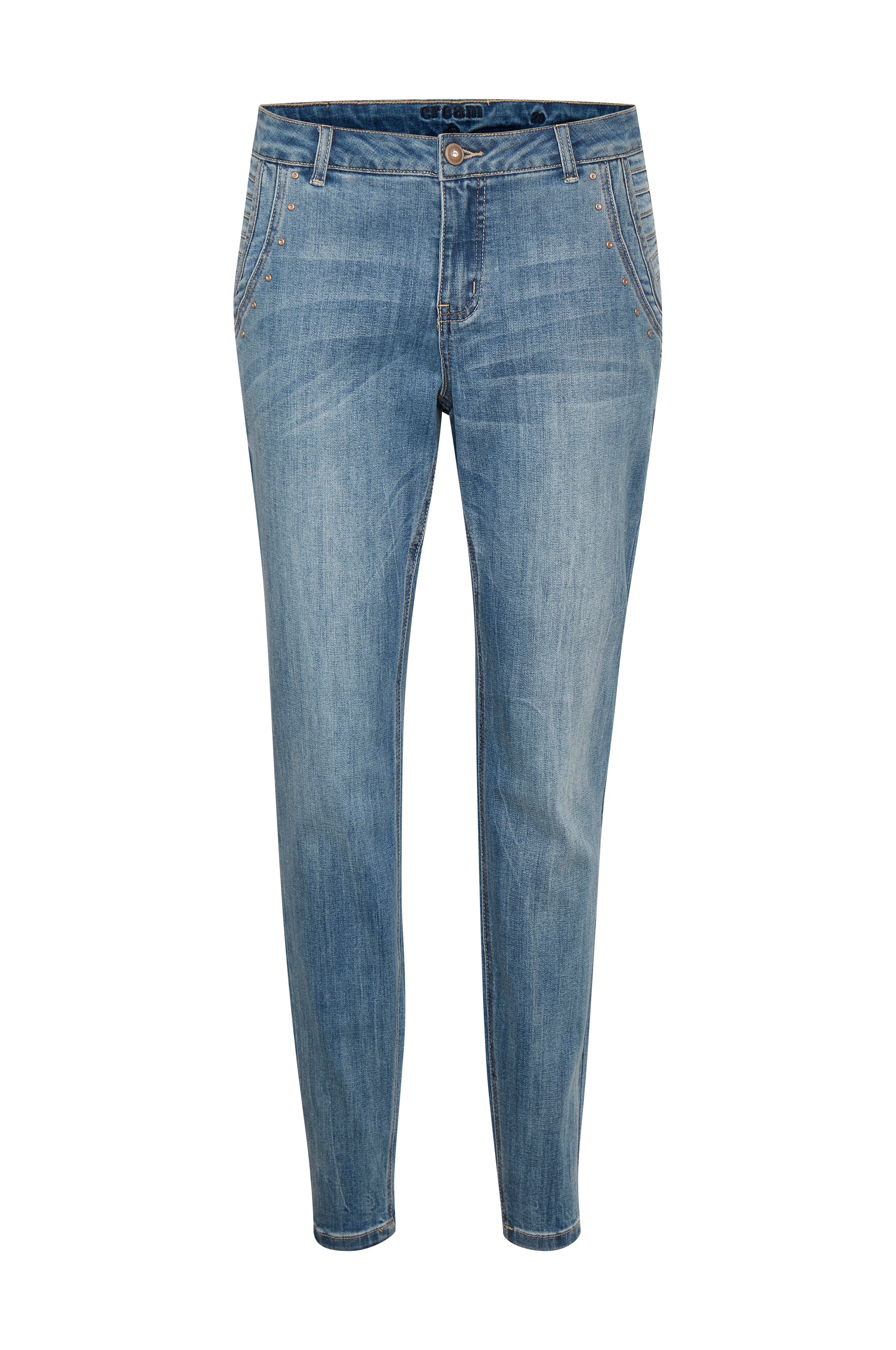 Jeansmodel Baiiley med lav talje og lavt skridt. Normal pasform. Lommer med pyntesømme og nitter foran. To baglommer. Lynlåsgylp og knap med similisten i taljen. Syet i stretchkvalitet. Indvendig benlængde ca. 76 cm i str. 27.