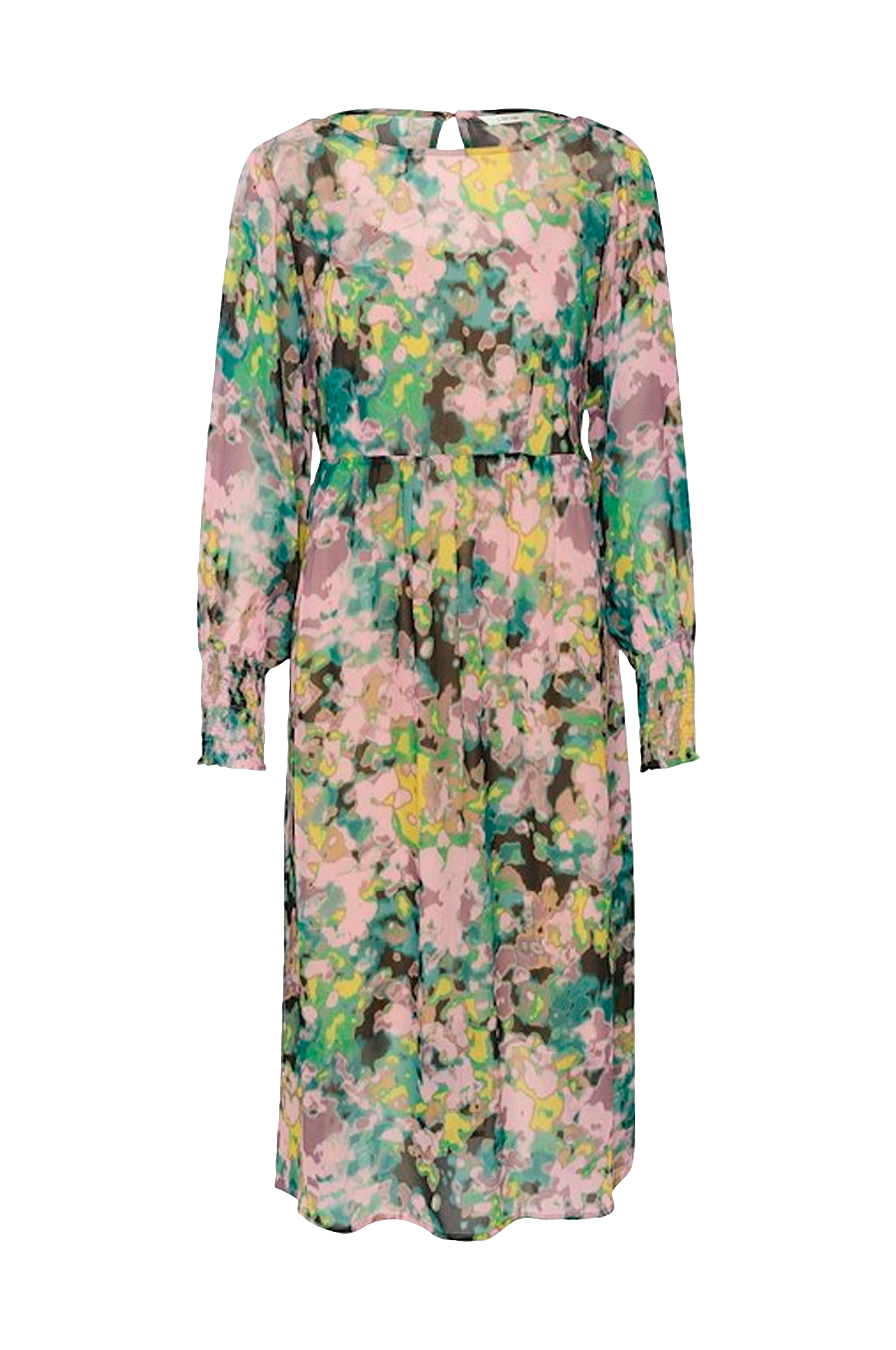 • Mønstret midikjole i transparent chiffon• Ventilation med knap i nakken• Smock ved manchetterne• Underkjole i jersey• Længde: 119 cm i størrelse 36