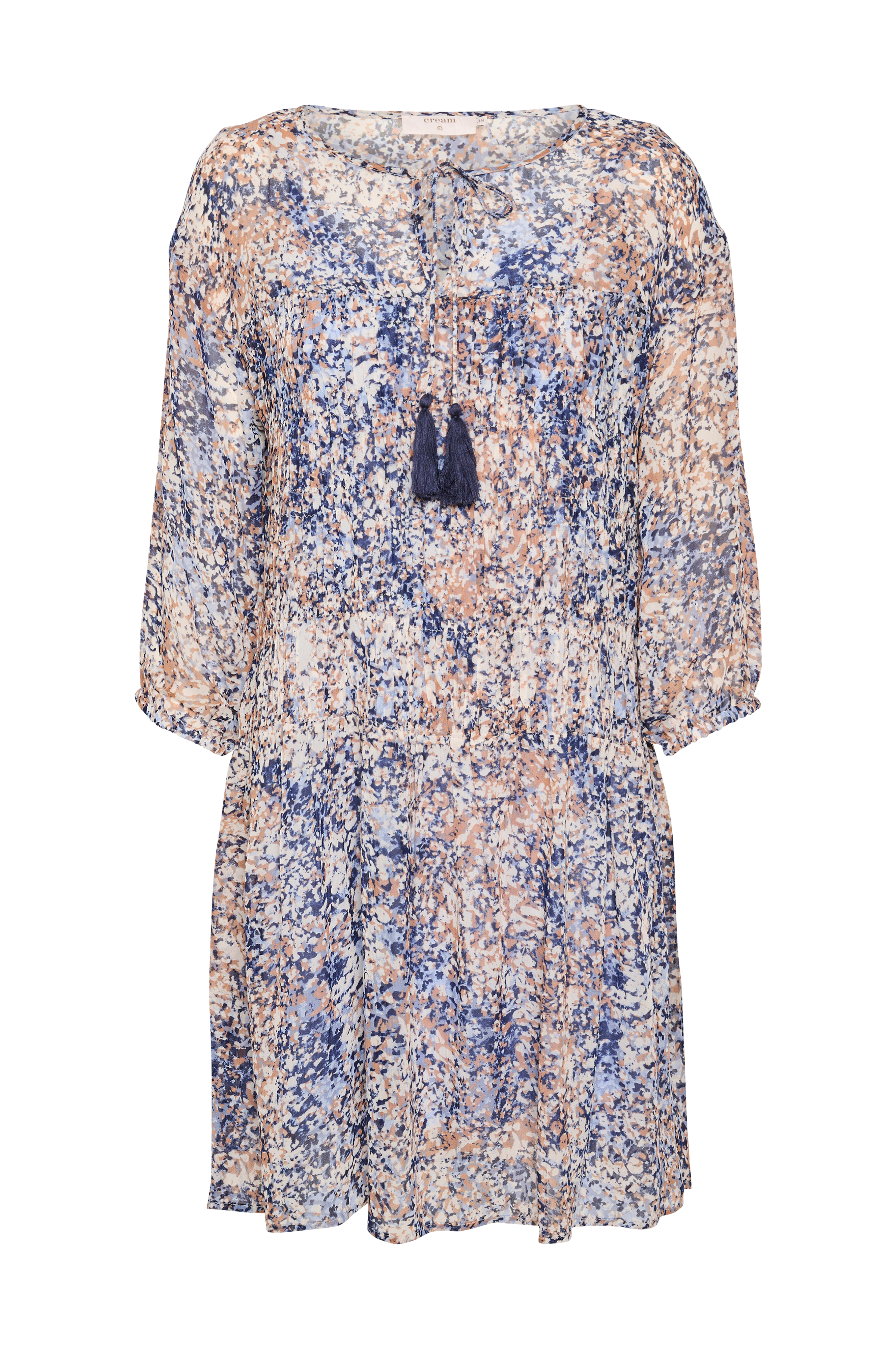 • Elastisk smock på toppen• Rund hals med ventilation og bindebånd foran• 3/4 lange ærmer med elastiske manchetter• Fremstillet af chiffon• Underkjole i jersey• Længde: 92 cm i størrelse 36