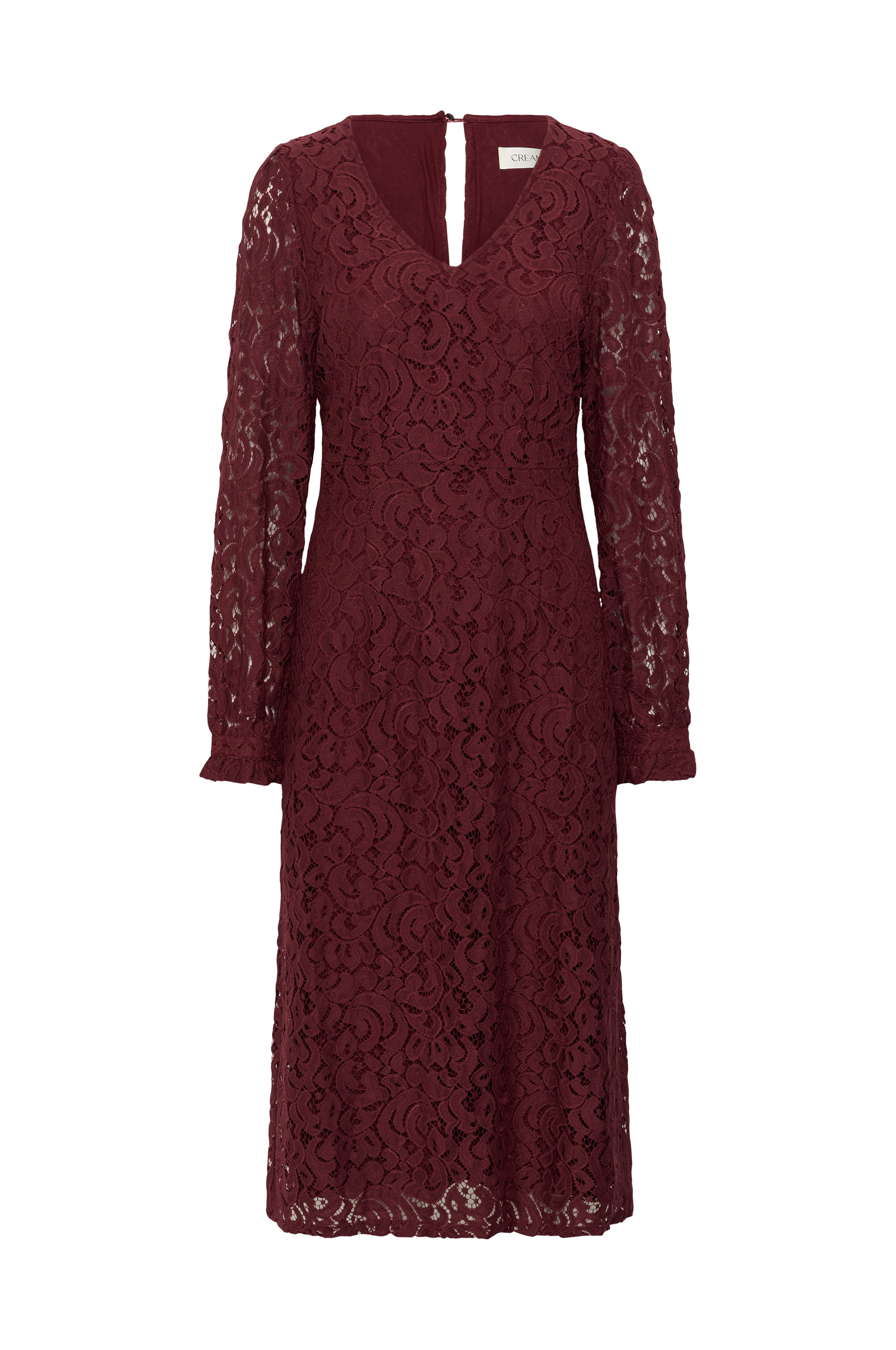 • Hulmønstret kjole• V-udskæring• Lange pufærmer• Slids med knap i nakken og ved manchetterne• Lynlåslukning i ryggen• Tekstilforing• Normal pasform• Længde: 118 cm i størrelse 36