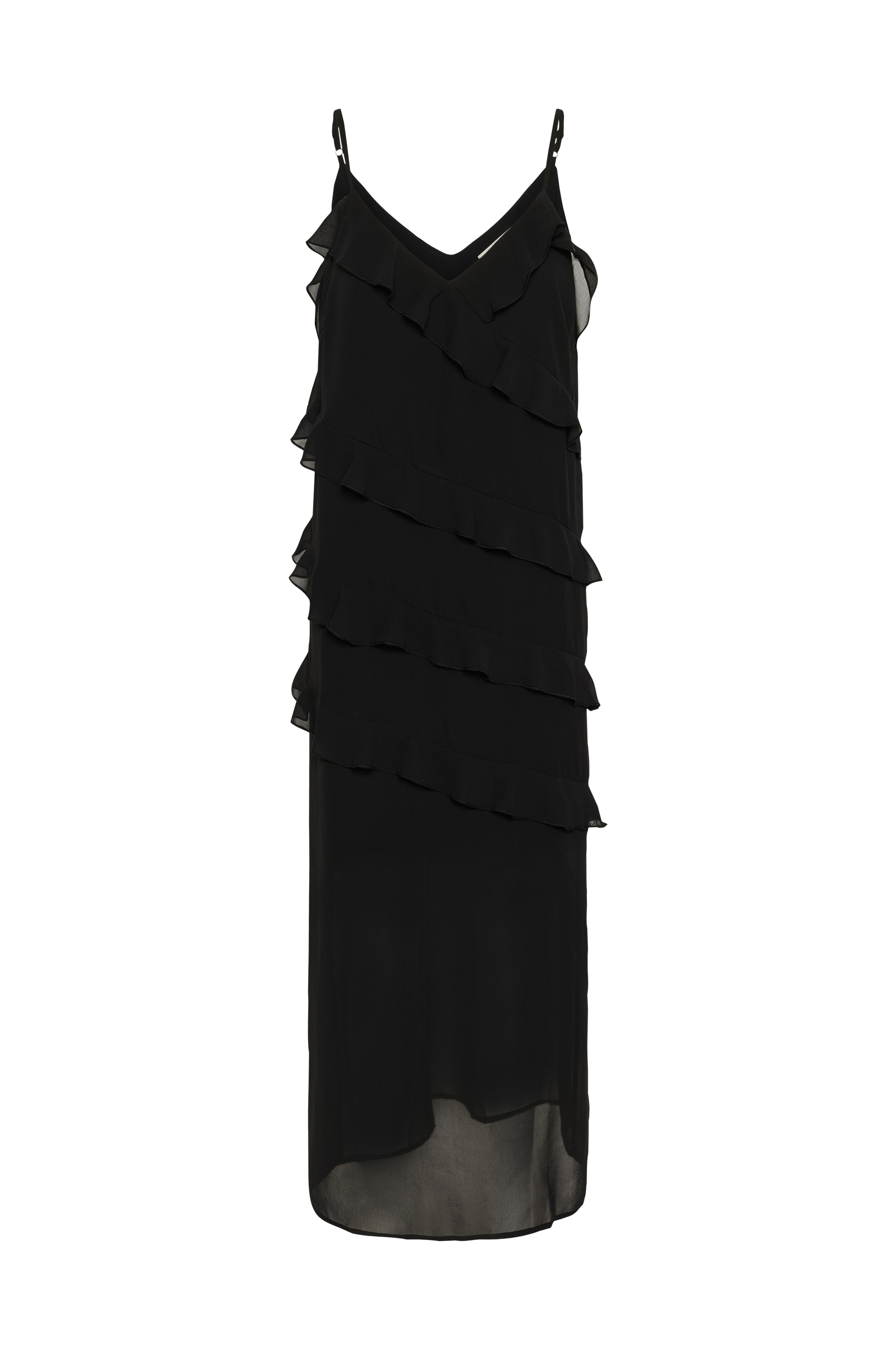 • Lang, foret kjole i chiffon med volanter foran• Tynde, justérbare skulderstropper• V-formet halsudskæring• Slids nederst i den ene side• Længde: 139 cm i størrelse 36