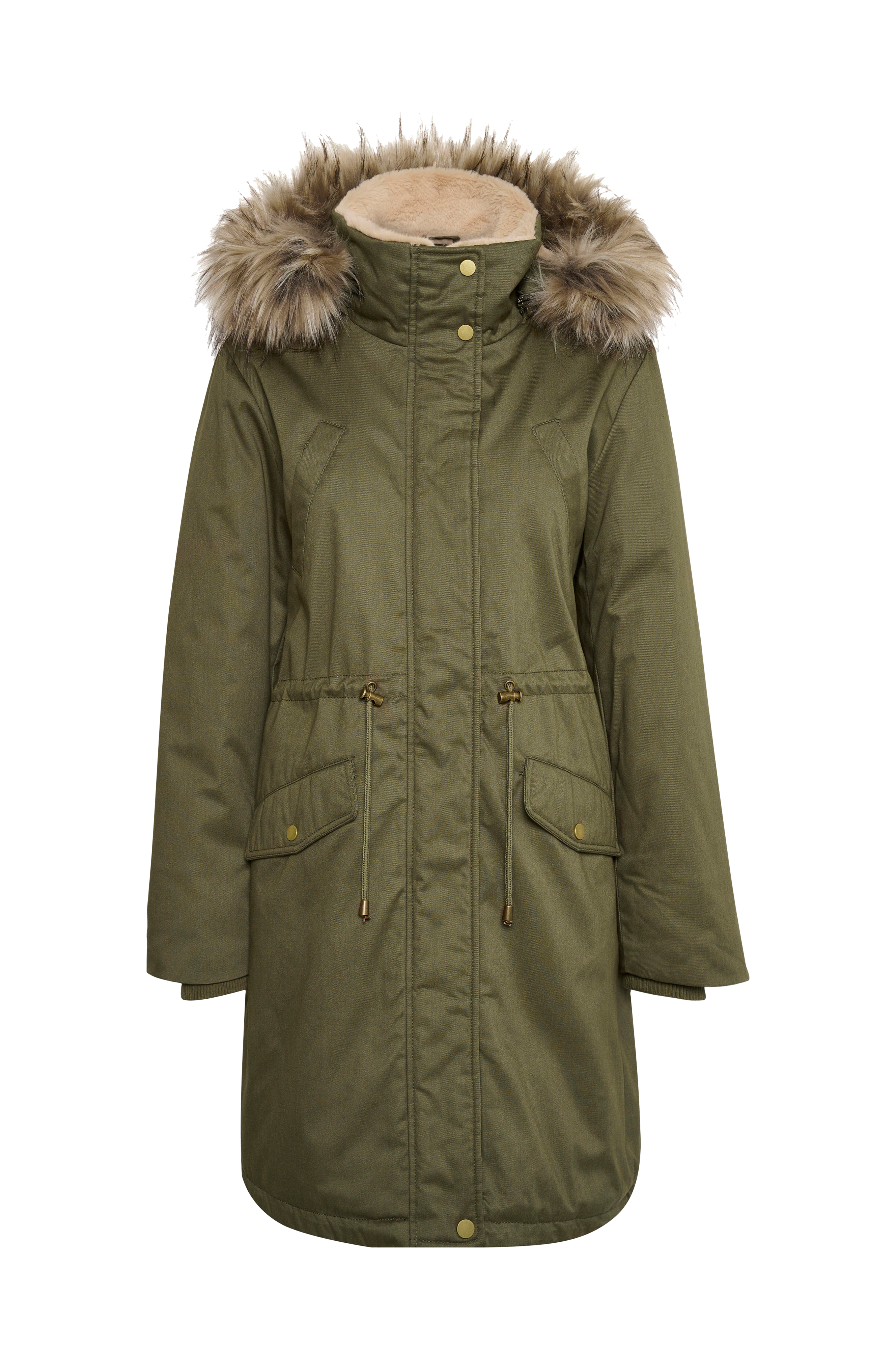 • Foret parka med blødt for i kunstskind på toppen• To-vejs lynlås foran• Vindflap med trykknapper foran• Aftagelig hætte med aftagelig imiteret pelskant• Broderet mønster på ryggen• Træksnørre ved taljen• Længde: 92 cm i størrelse 36