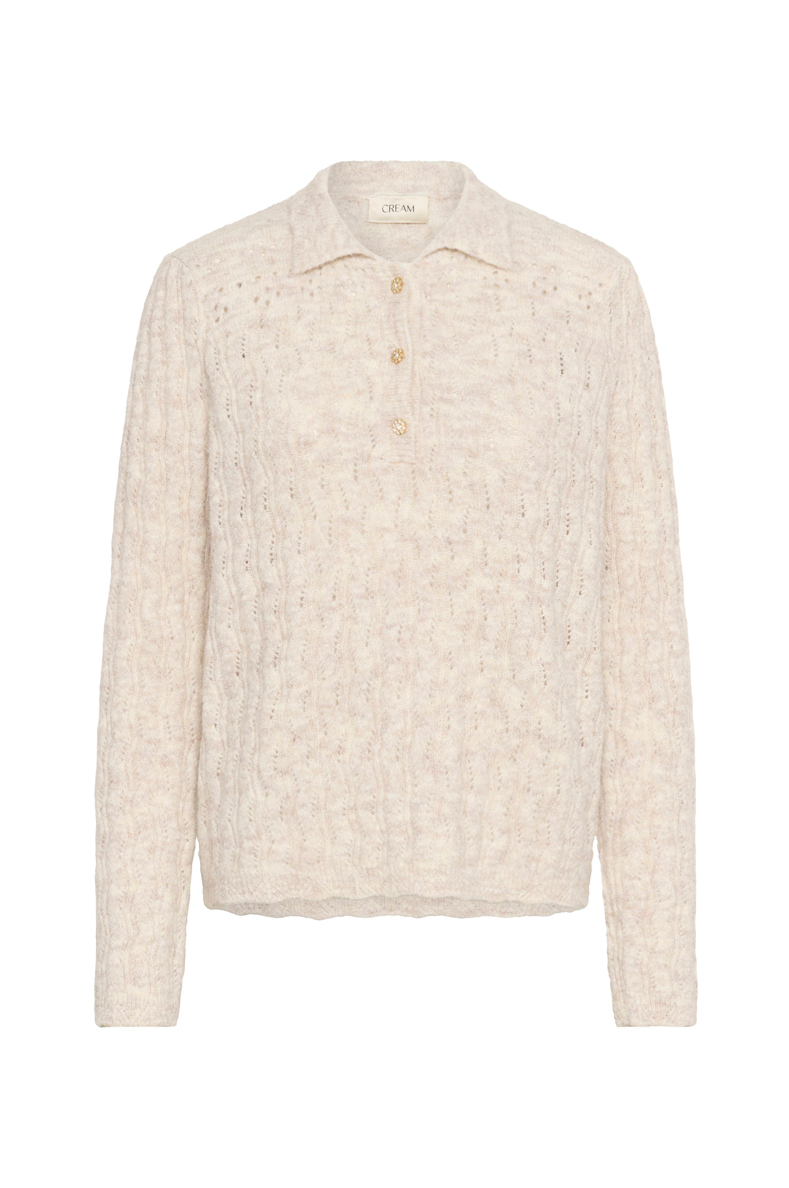 • Mønsterstrikket Pullover med lange ærmer• Ribbet krave med kort knaplukning foran foran• Guldfarvede knapper med funklende sten langs knappen foran• Ribkanter ved ærmeafslutningerne og ved nederste kant