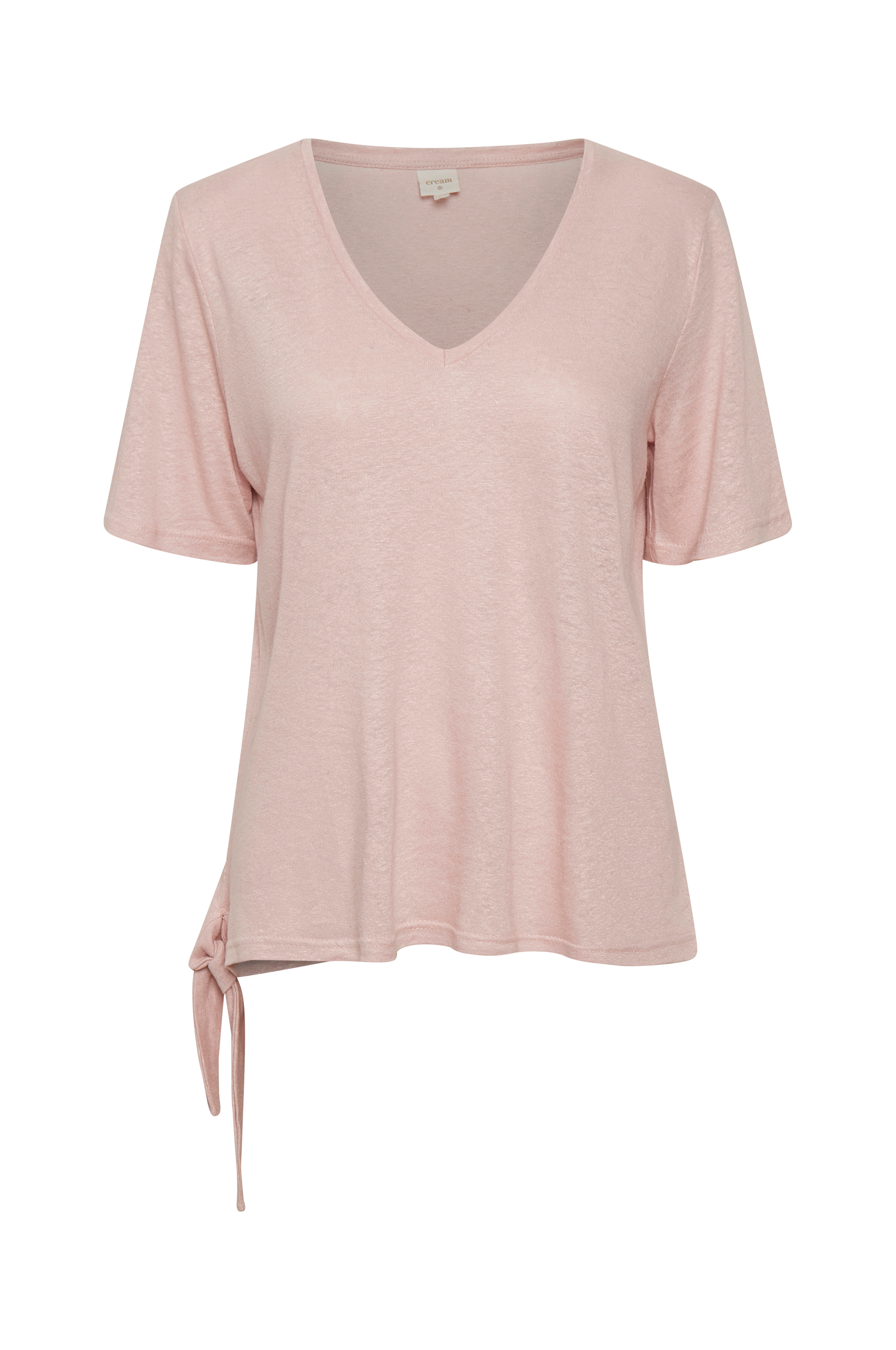 Top i luftig hørblanding. V-udskæring foran, korte ærmer og bindebånd i den ene side forneden.