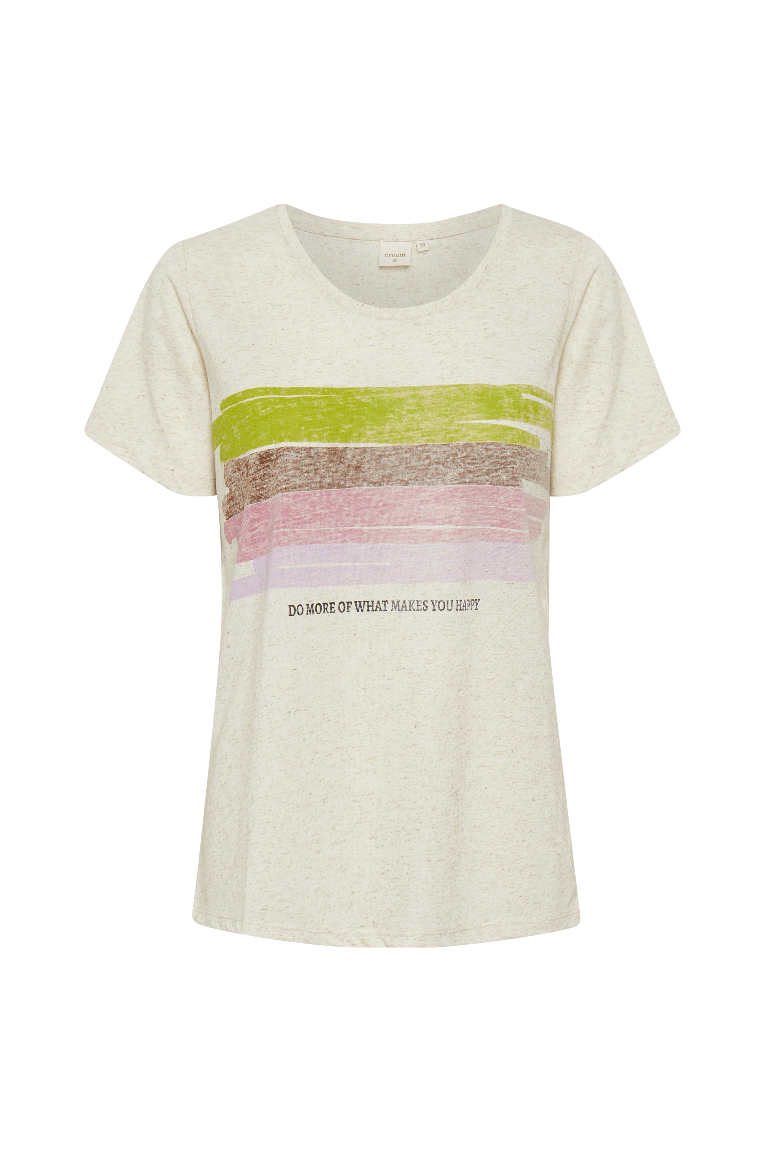 Kortærmet top i polyester- og hørblanding med meleret effekt og print foran. Korte ærmer og rund hals med ribkant.