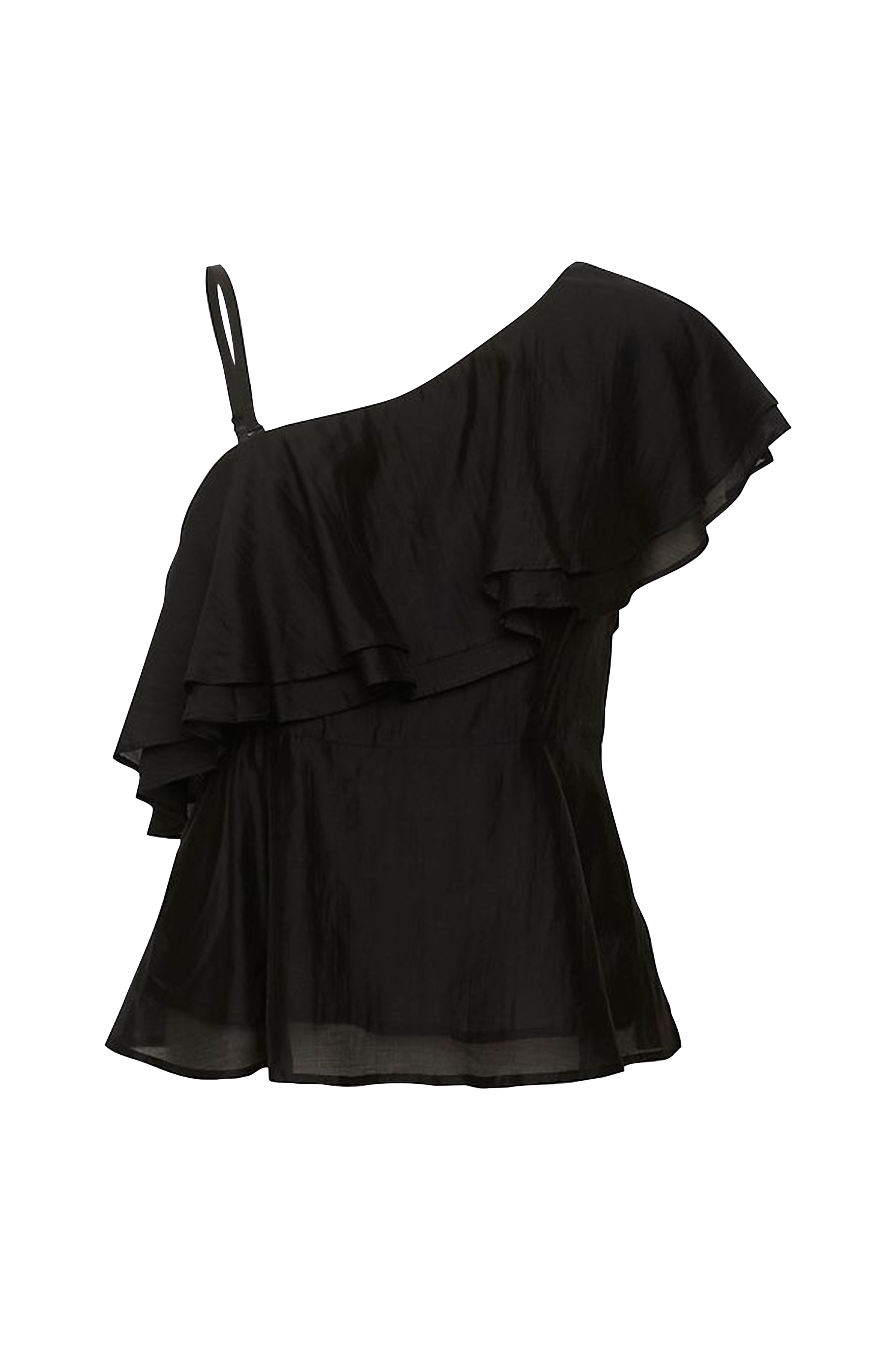 • Asymmetrisk design på toppen med volanter og aftagelig skulderstrop