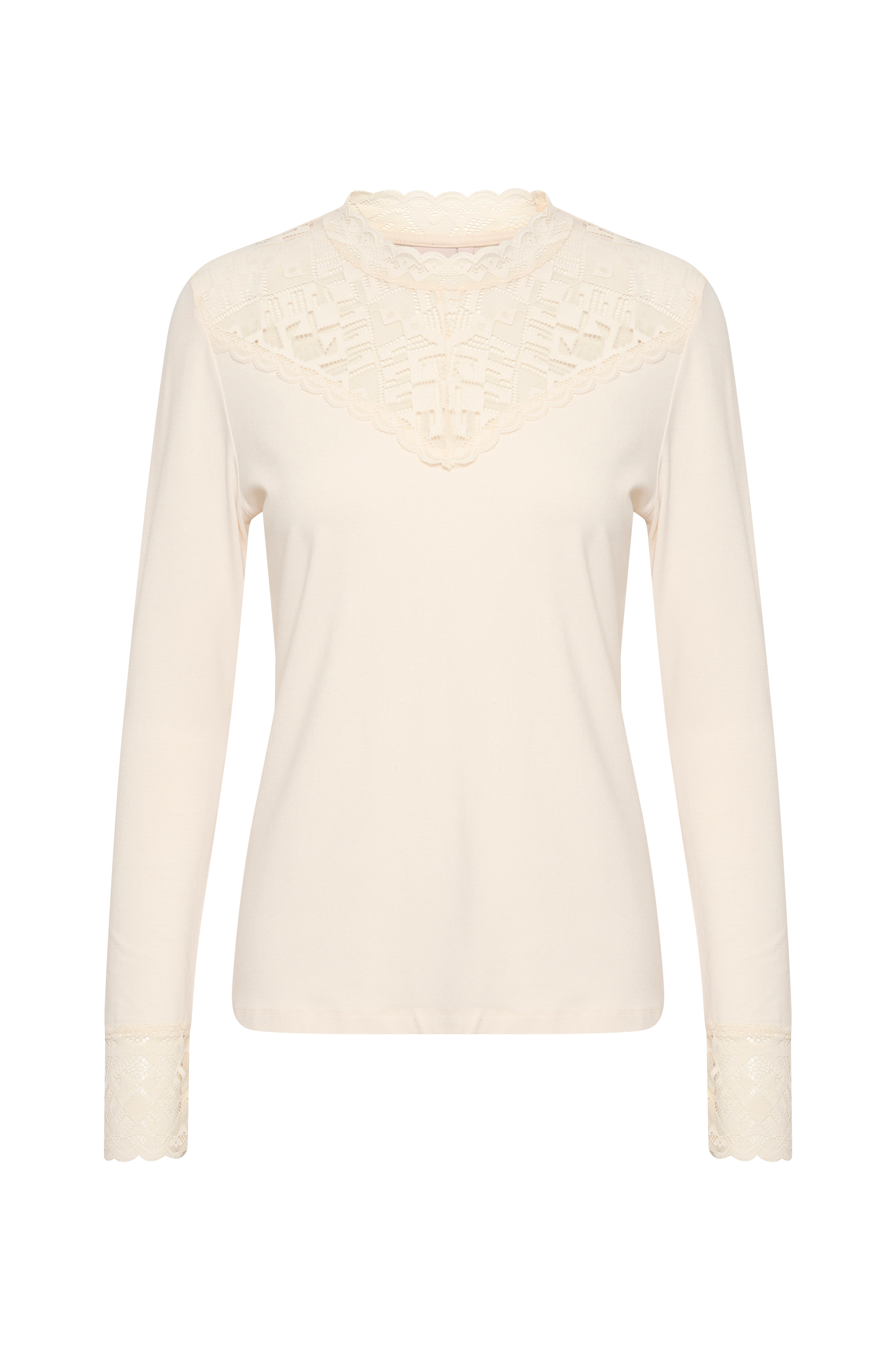 • Langærmet top i viskosejersey• Blonde oppe foran og ved ærmeafslutningerne• Lige pasform
