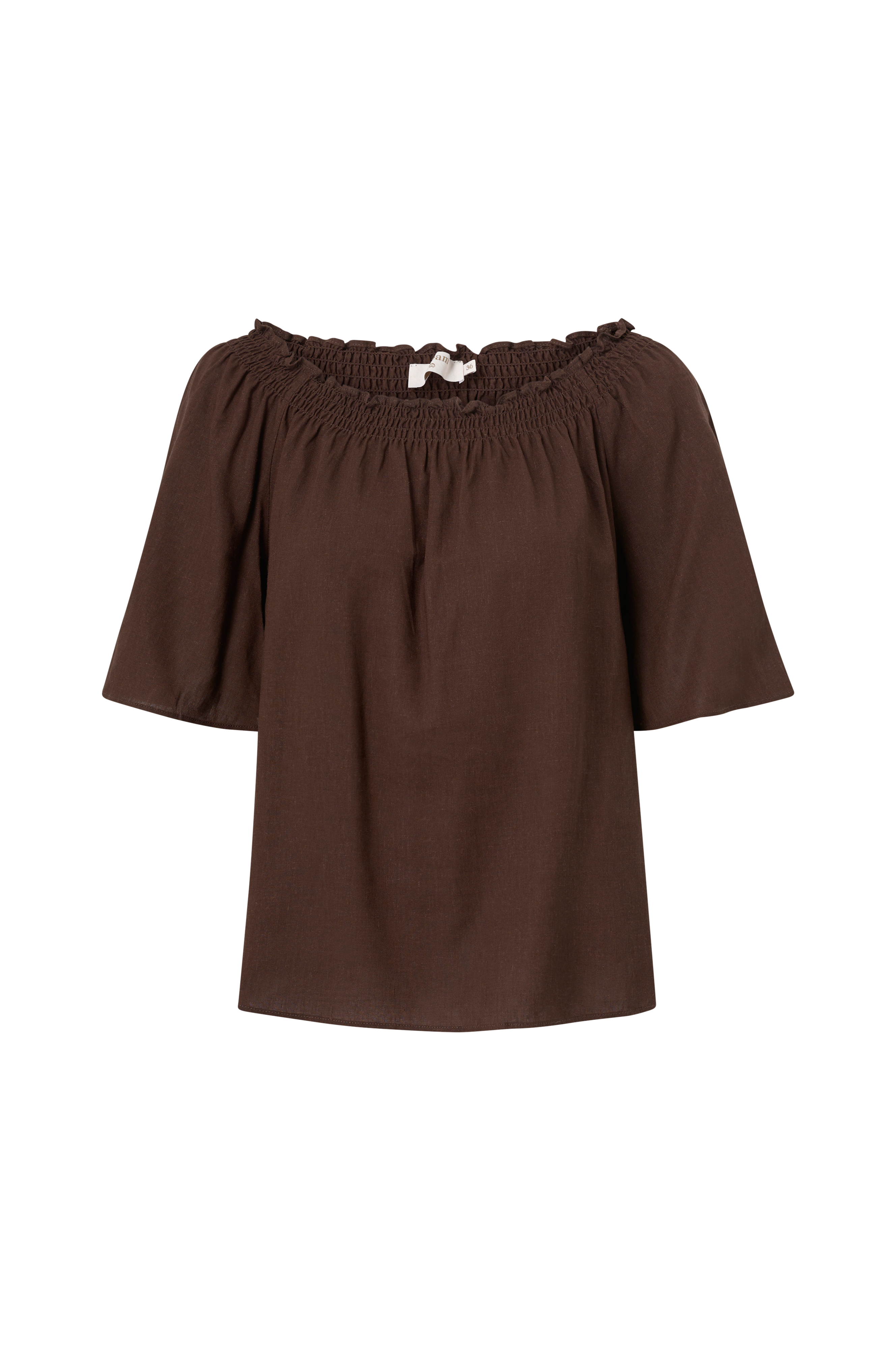 • Lige, uformel model• Bred halsudskæring med elastiske sømme hele vejen rundt• Kort ærme