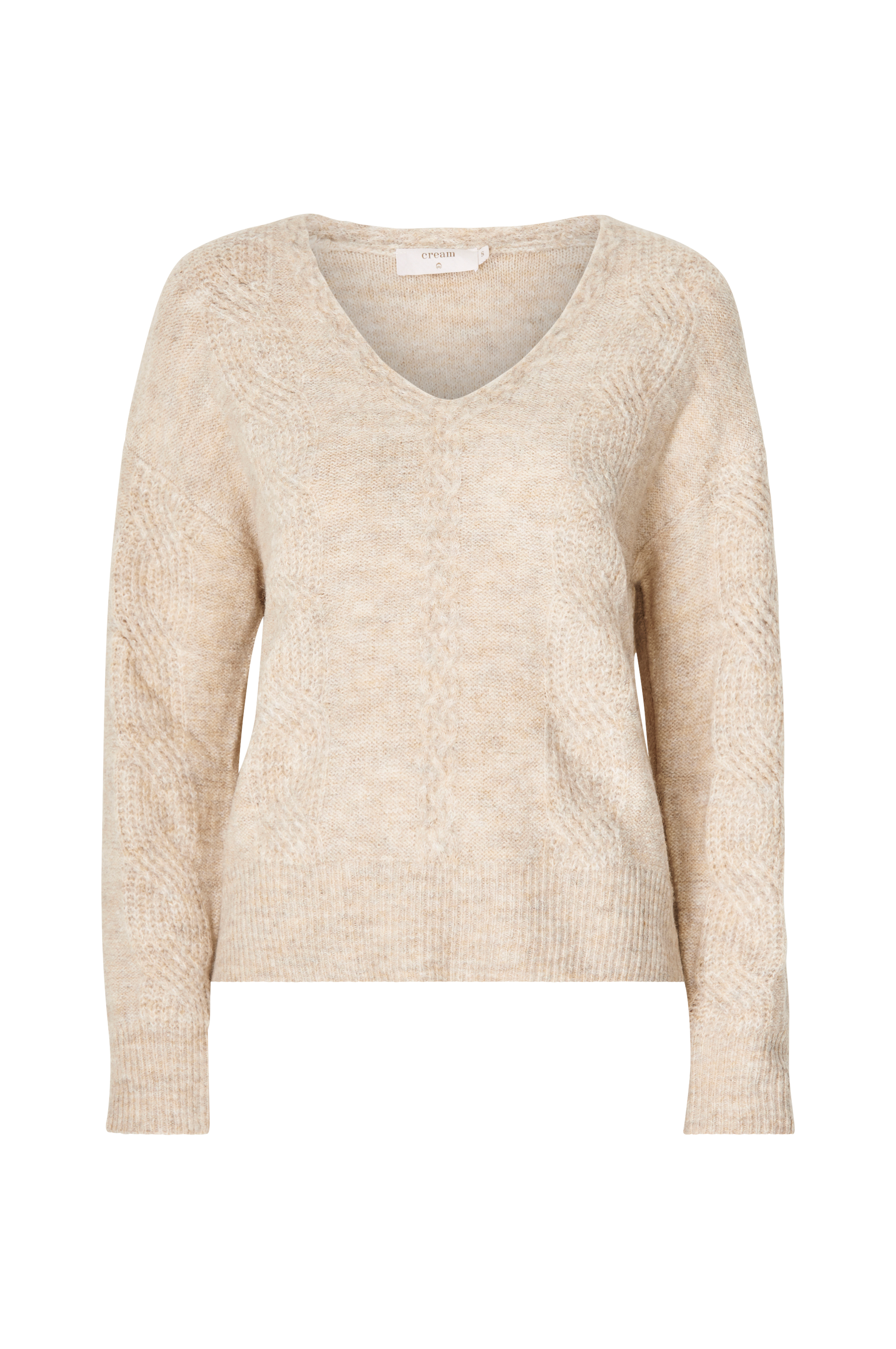 • Strukturstrikket trøje i uldmiks• V-udskæring• Ribstrik ved manchetterne og nederst