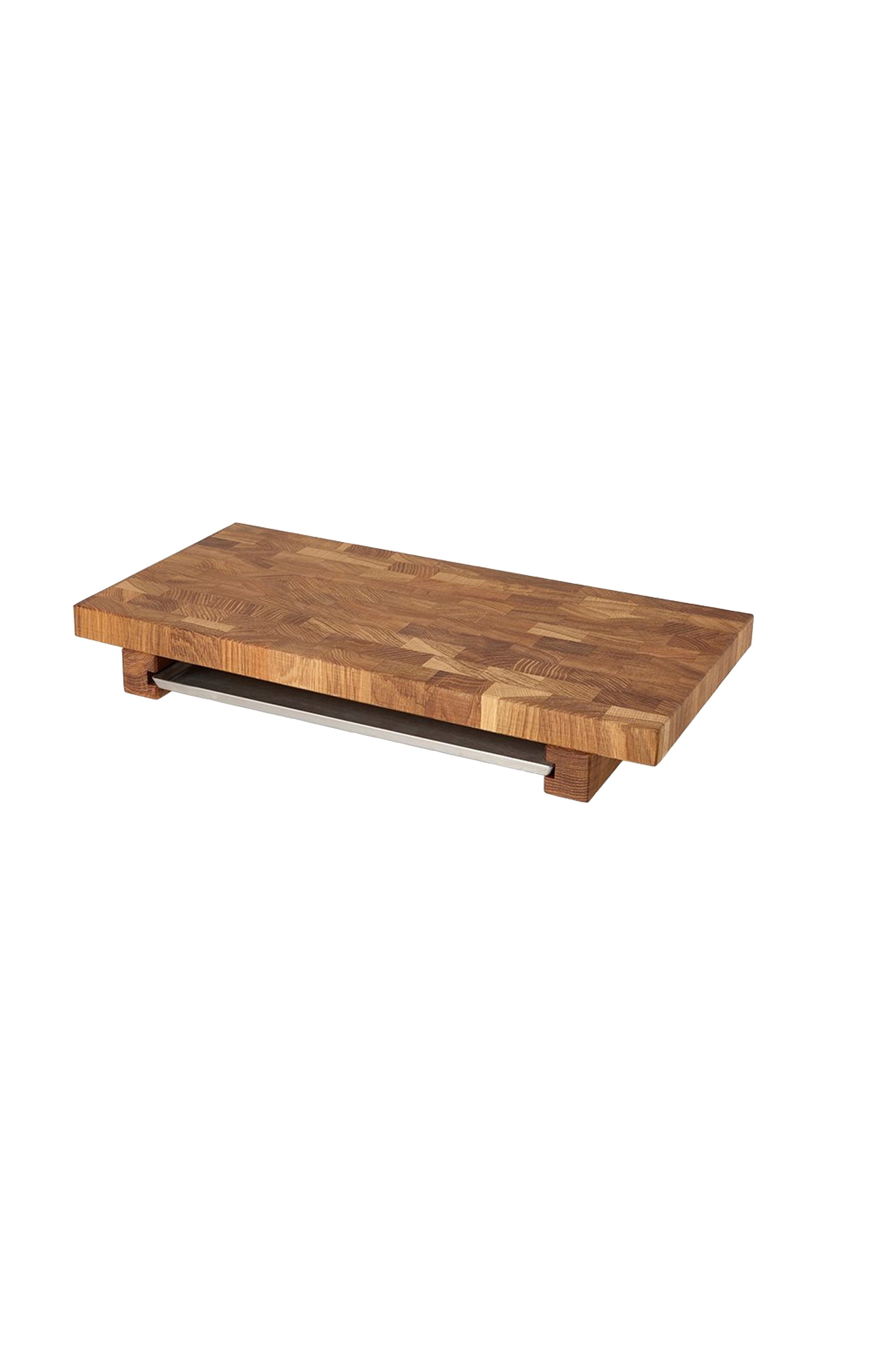 Et utroligt flot og eksklusivt skærebræt i stavlimet nordisk egetræ. Brættet er behandlet med økologisk hørfrøolie. Skærebrættet har også en udtrækkelig rustfri plade. Skærebrættet måler 50 x 25 cm og er udviklet i tæt samarbejde med en af Sveriges førende kokke gennem tiderne, mathias dahlgren. tør brættet af med en fugtig klud, og sørg for, at det er helt tørt, før du lægger det væk. Opbevar brættet på et tørt sted. Skærebrættet kan om nødvendigt olieres med tilpasset vegetabilsk olie. mål: 50 x 25 x 7 cm vægt: 3,6 kg læs mathias' tanker om det eksklusive bræt; hvorfor et skærebræt i en ny form? Privat i hjemmekøkkenet har jeg ofte oplevet, at når bordpladen er 60 cm, optager det store skærebræt unødigt meget plads fra arbejdsfladen. Med et smallere bræt kan jeg f.eks. sætte en salatskål foran brættet og arbejde både mere effektivt og med et bedre overblik over, hvor jeg er på vej hen i processen. den lille plade under skærebrættet gør det hurtigt og nemt at skrabe f.eks. brødkrummer eller ...