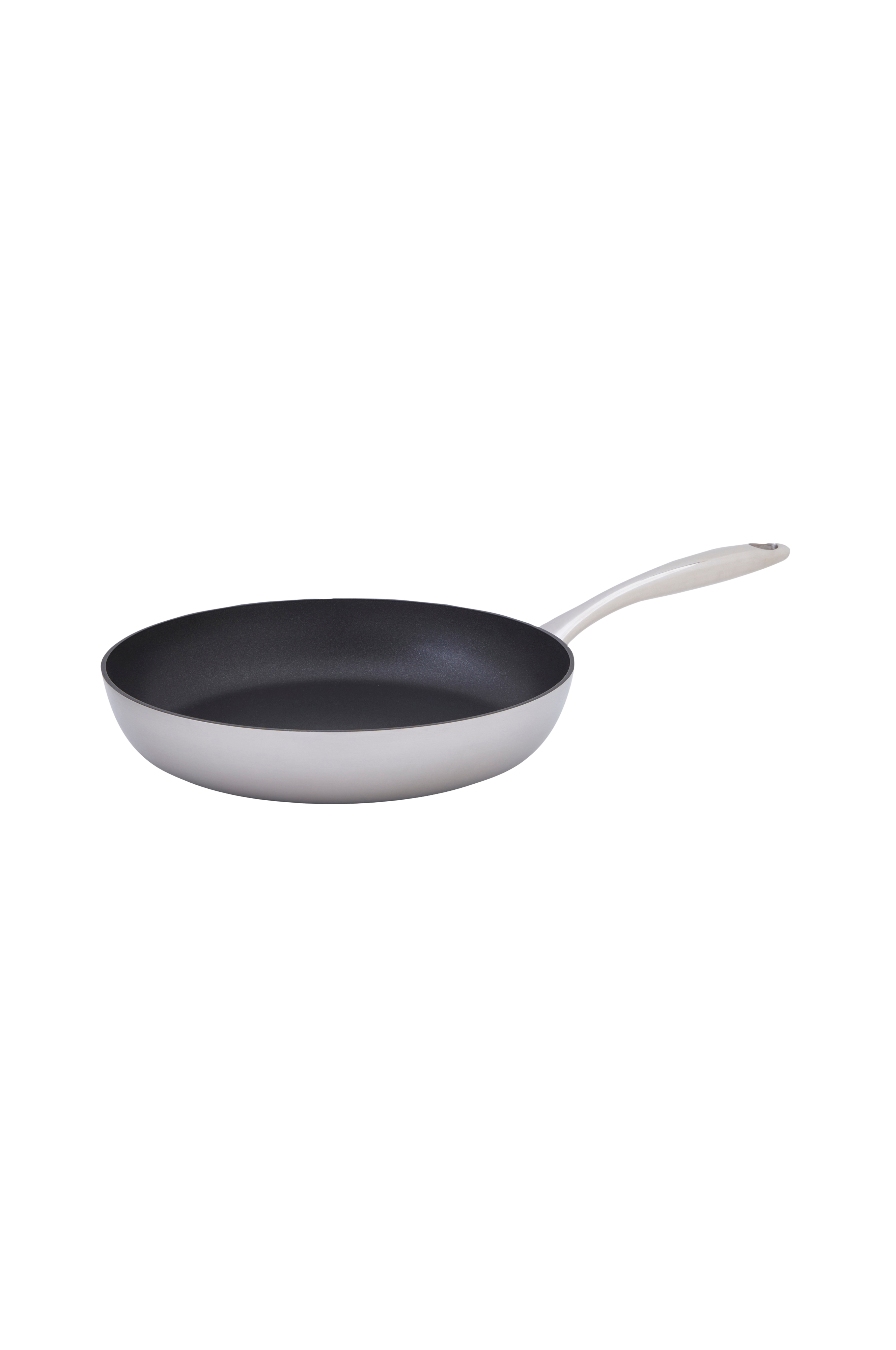 En stor stegepande med belægning som er velegnet til at stege kød, fisk og grøntsager.