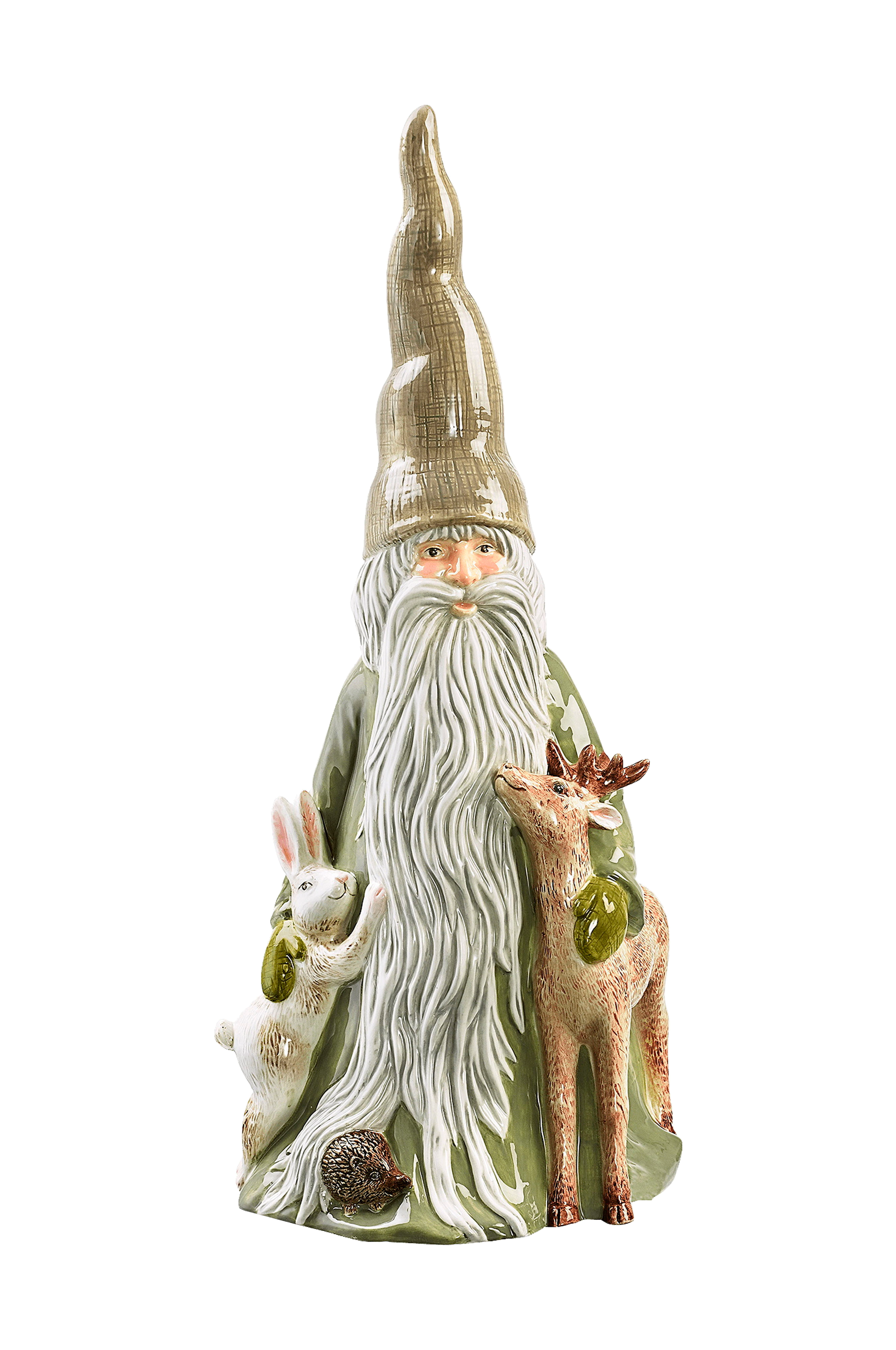 Håndmalet keramisk julemand. Serien skogstomte er en hyldest til naturen og skoven. Design marita lord