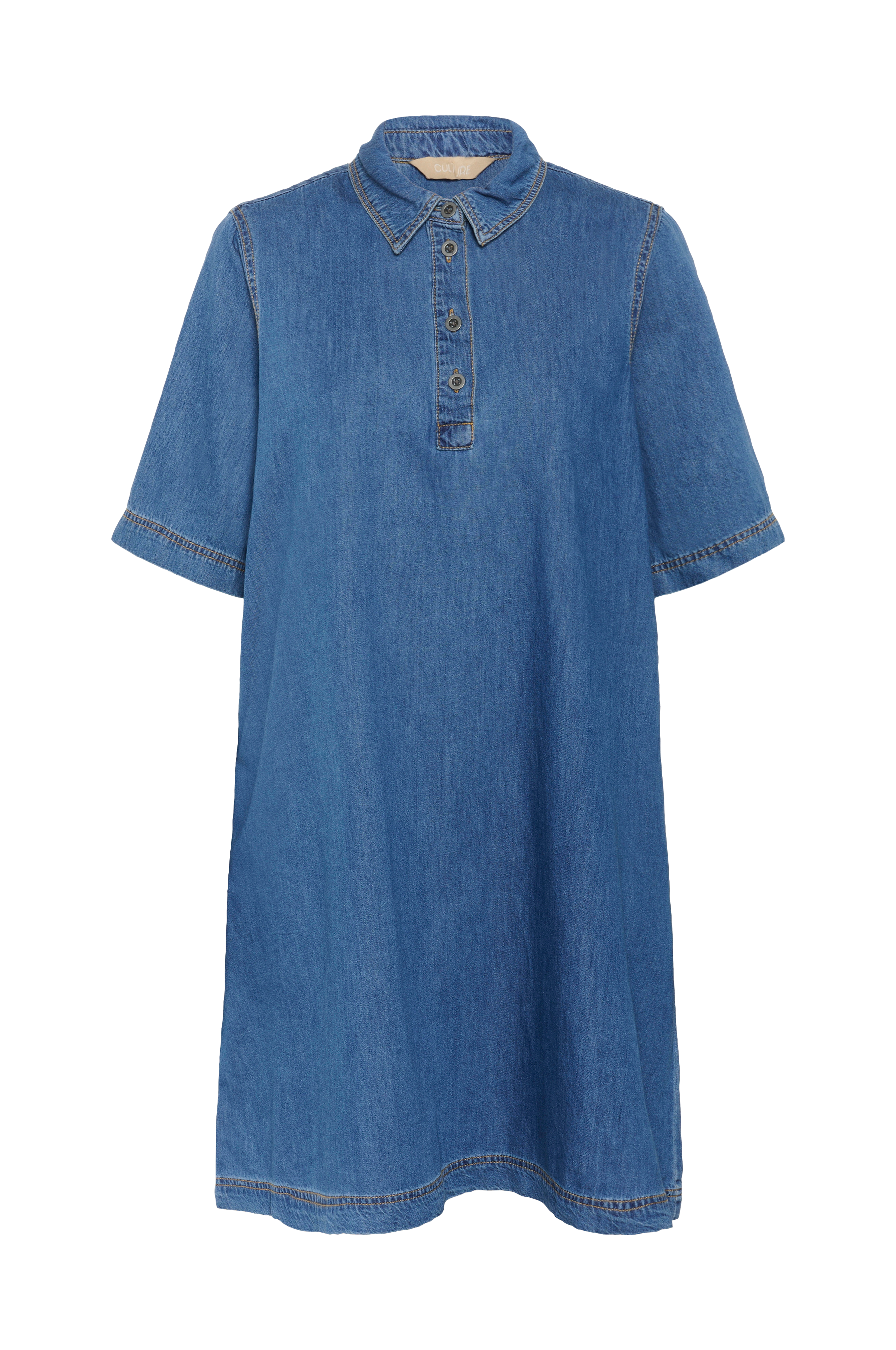 • Kjole i let, tynd denim• Krave• Fire knapper• Korte ærmer• Sidelommer• Længde: 95 cm i størrelse S