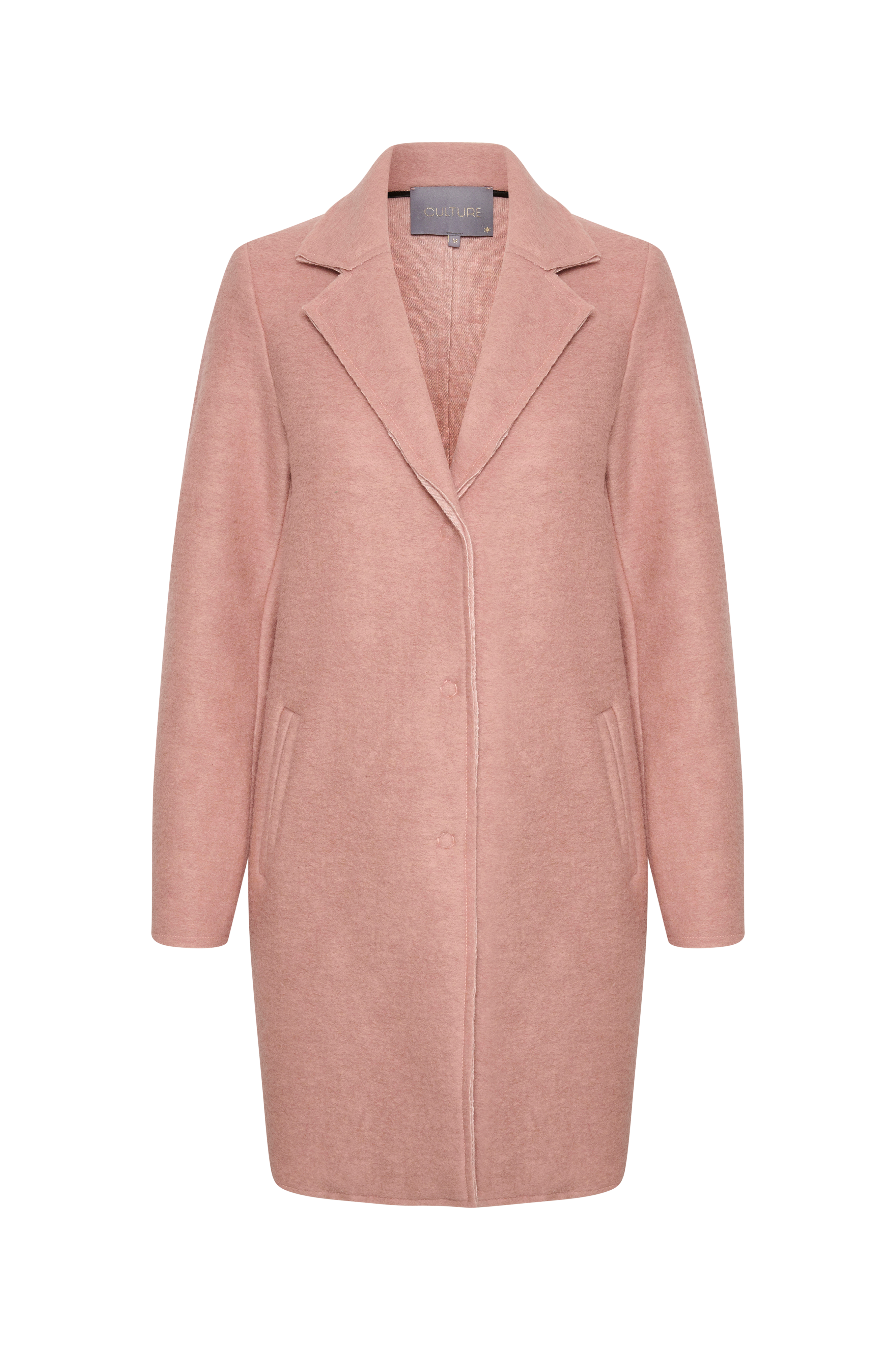 • Uforet frakke i uldmiks• Skjulte trykknapper ved manchetterne• To lommer• Længde: 88 cm i størrelse S